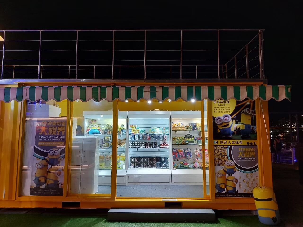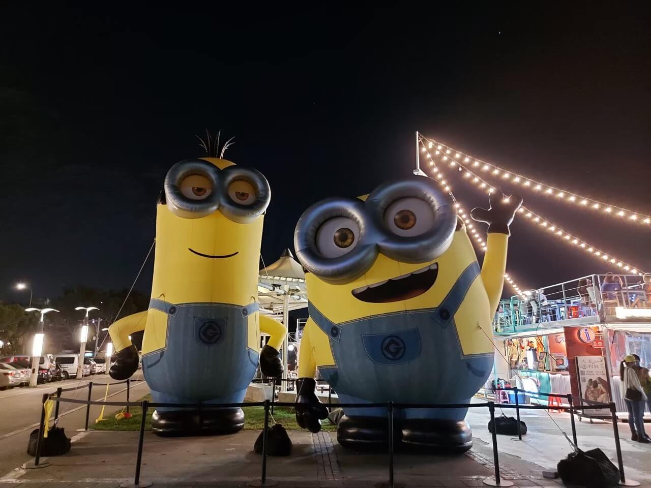 除了多了燈泡裝飾以外,這一次的台北景點 大稻埕碼頭聖誕貨櫃市集還有快閃小小兵,兩隻大型充氣小小兵並排在一起,挺吸睛的,而一旁的貨櫃裡面還有販售小小兵的周邊