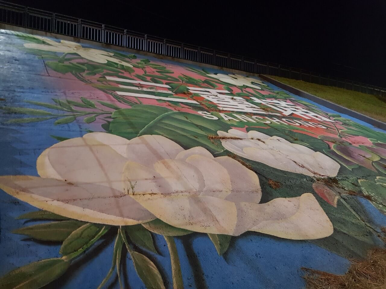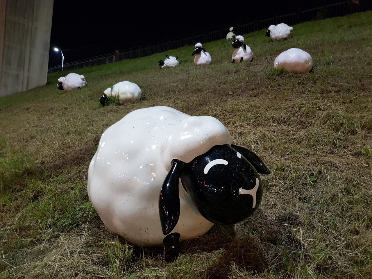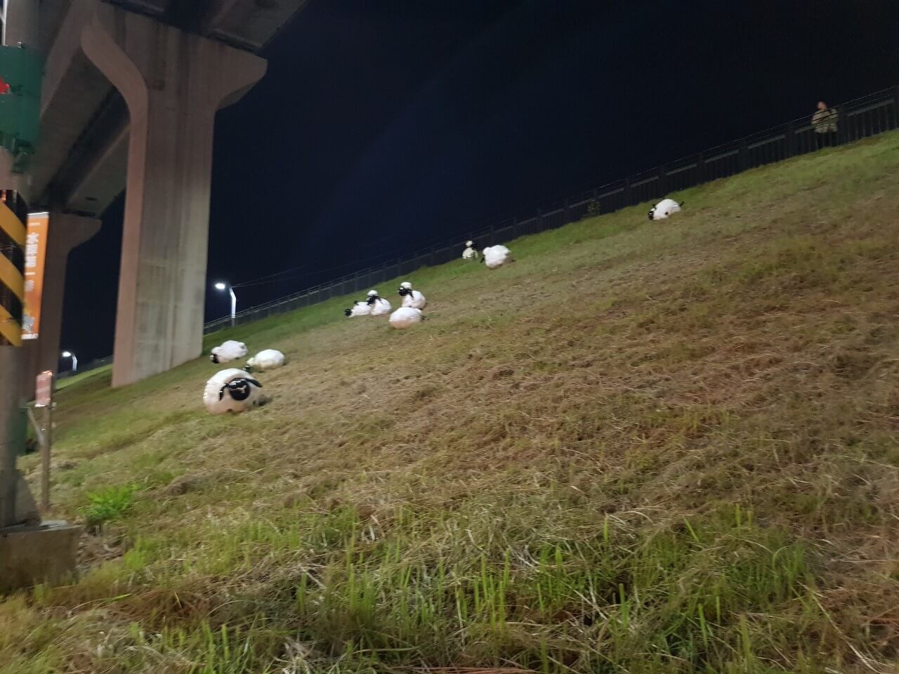 首先會看到三個大大的「三重埔」左邊草皮上還有設計很可愛的小綿羊藝術作品,然後上樓梯就會看到很漂亮的夜景啦。