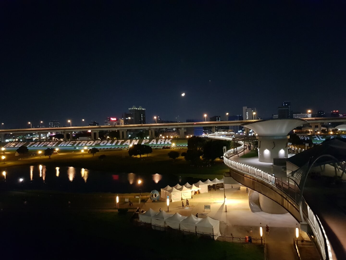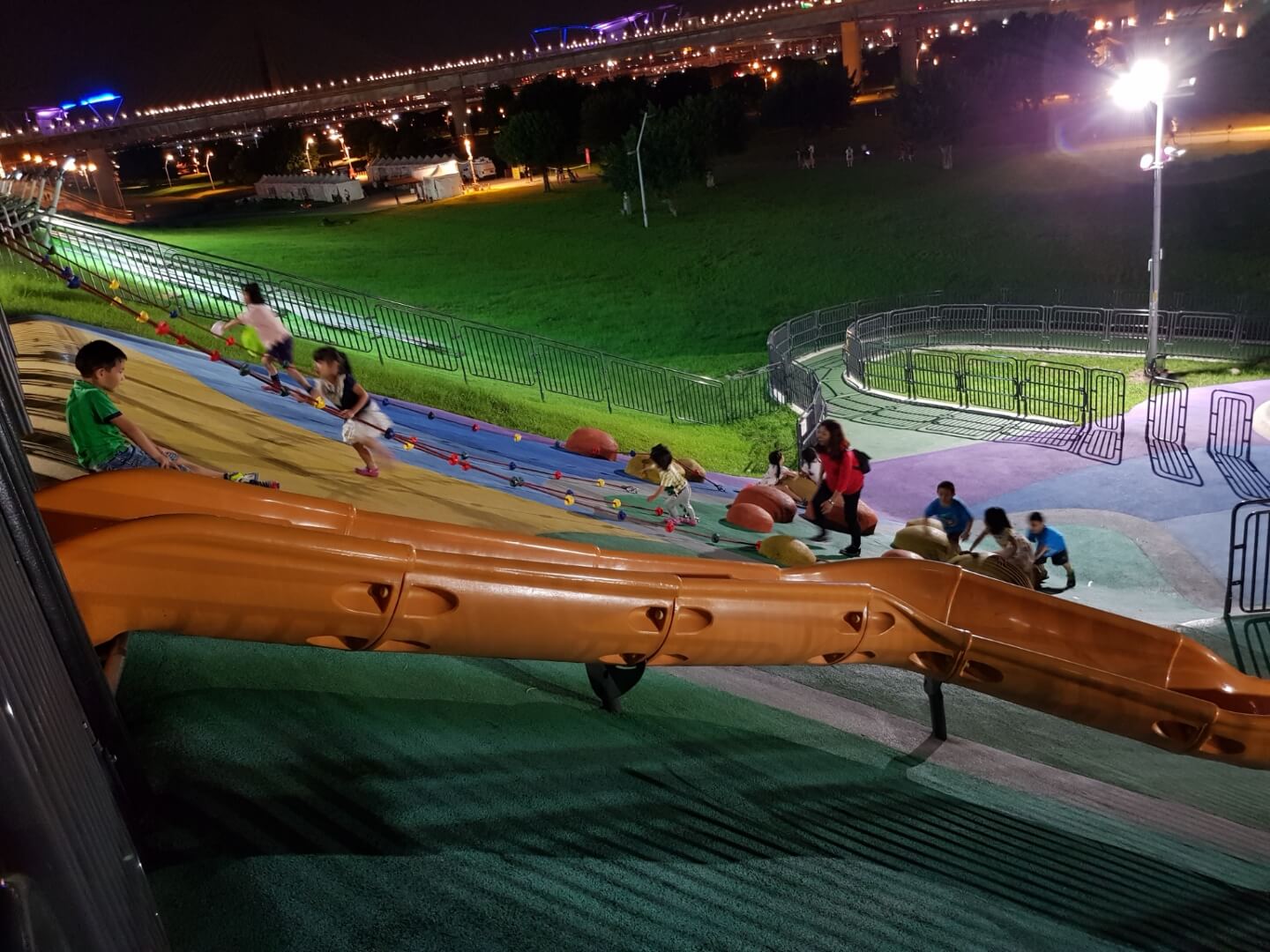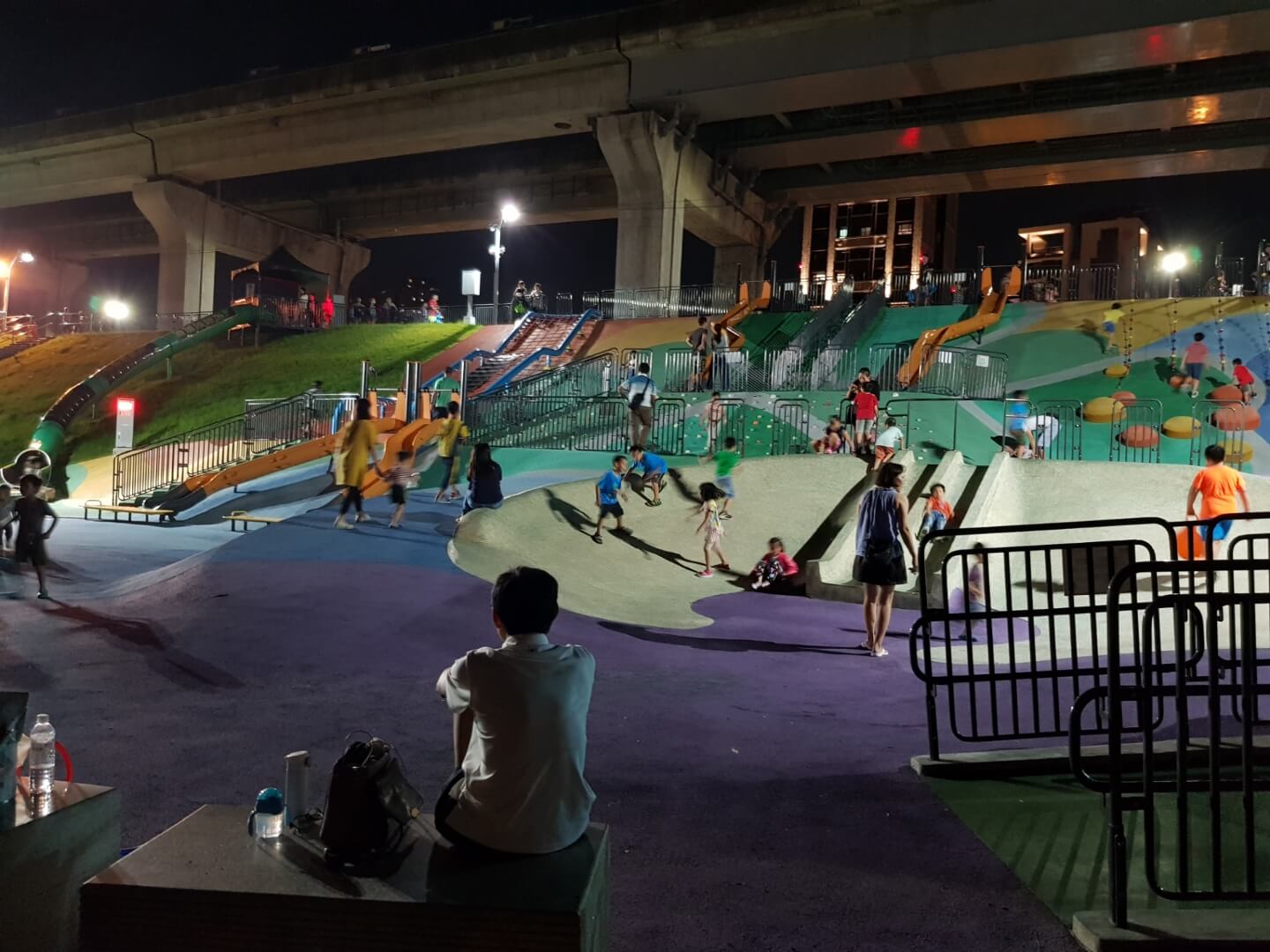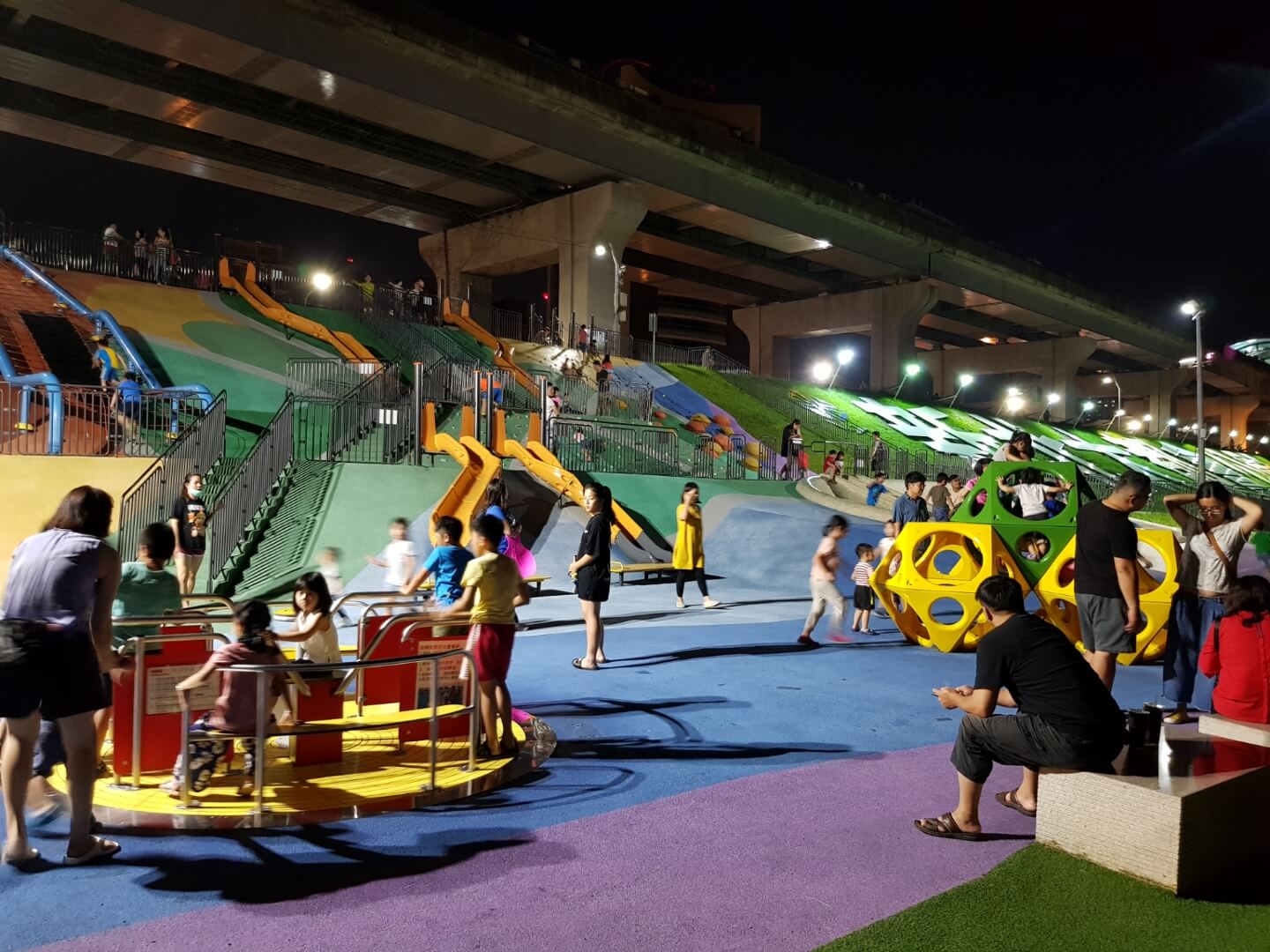 不得不說現在河堤的設計越來越多樣化,有供小朋友玩的遊樂設施,情侶們看夜景談戀愛的地方,熱血青年運動打球的場地,是不是很棒呀