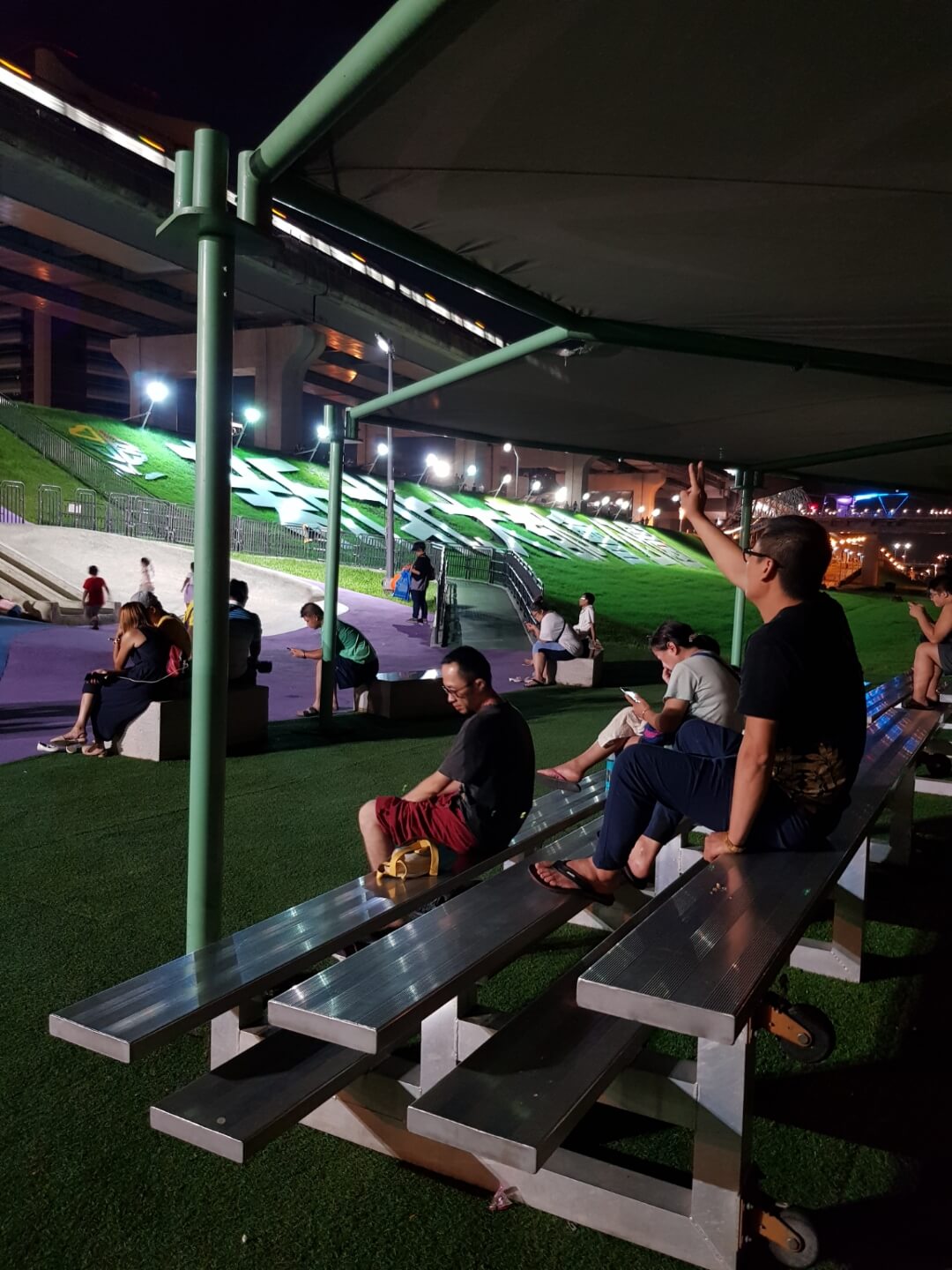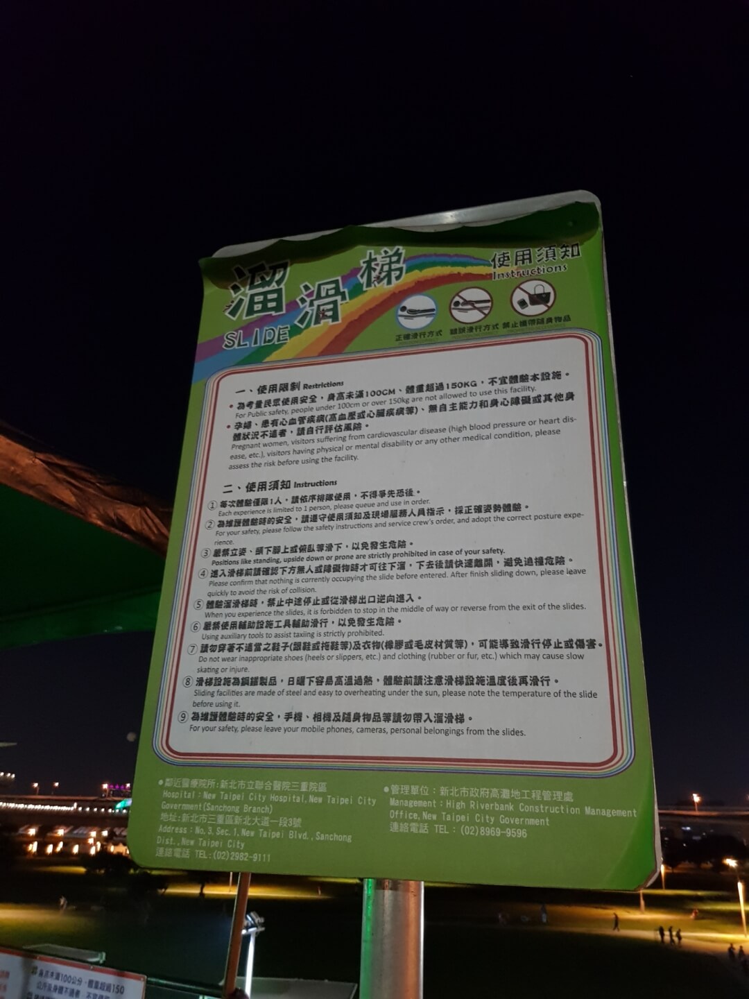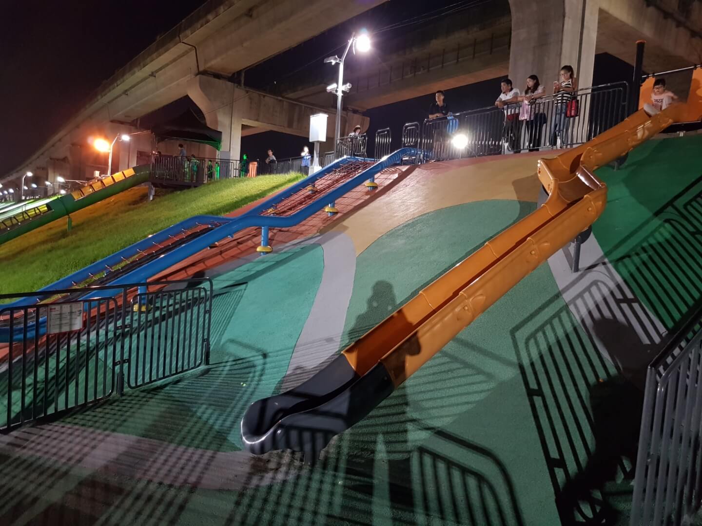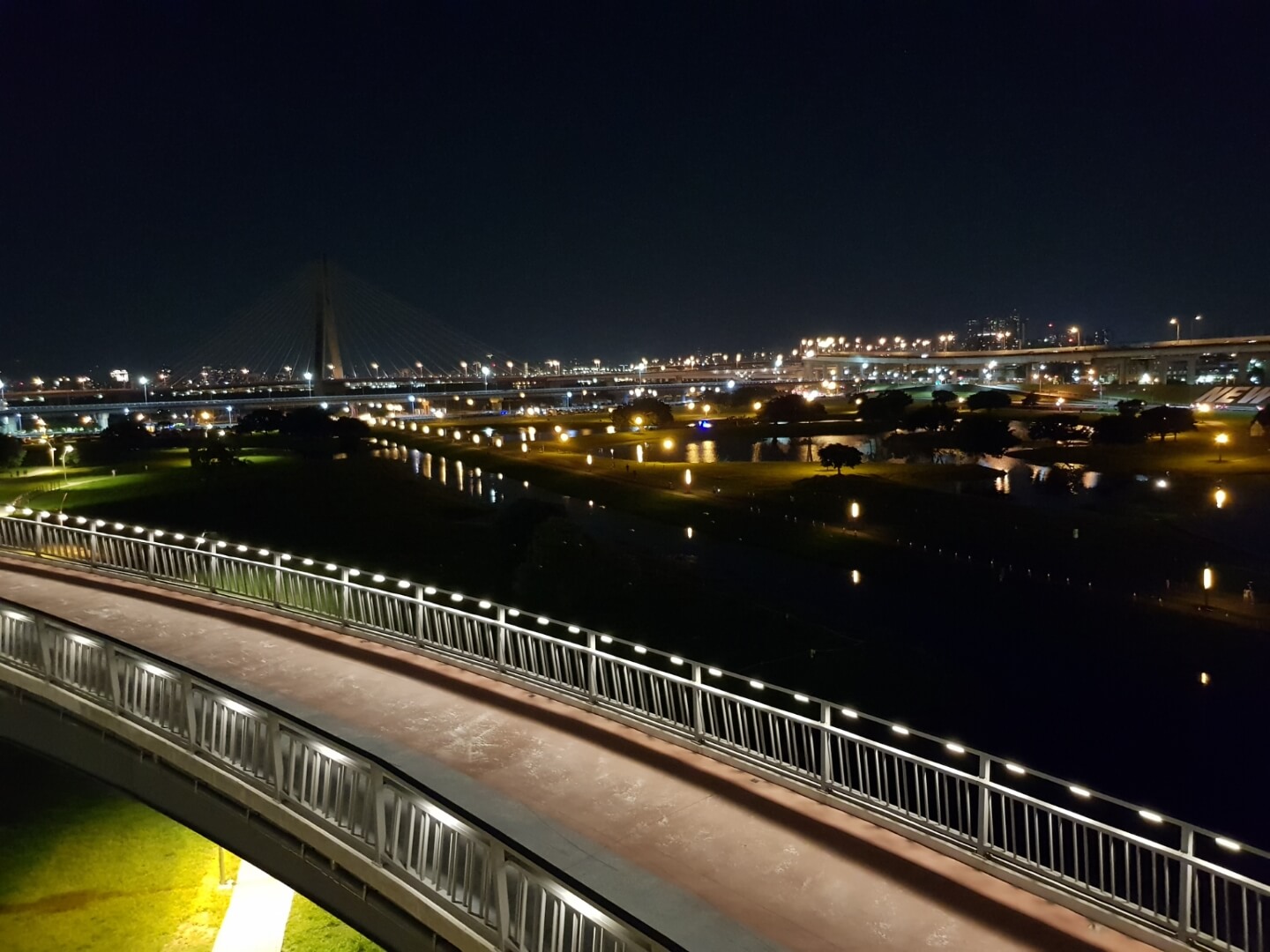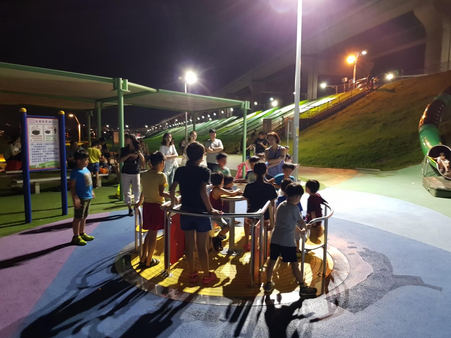 不得不說現在河堤的設計越來越多樣化,有供小朋友玩的遊樂設施,情侶們看夜景談戀愛的地方,熱血青年運動打球的場地,是不是很棒呀