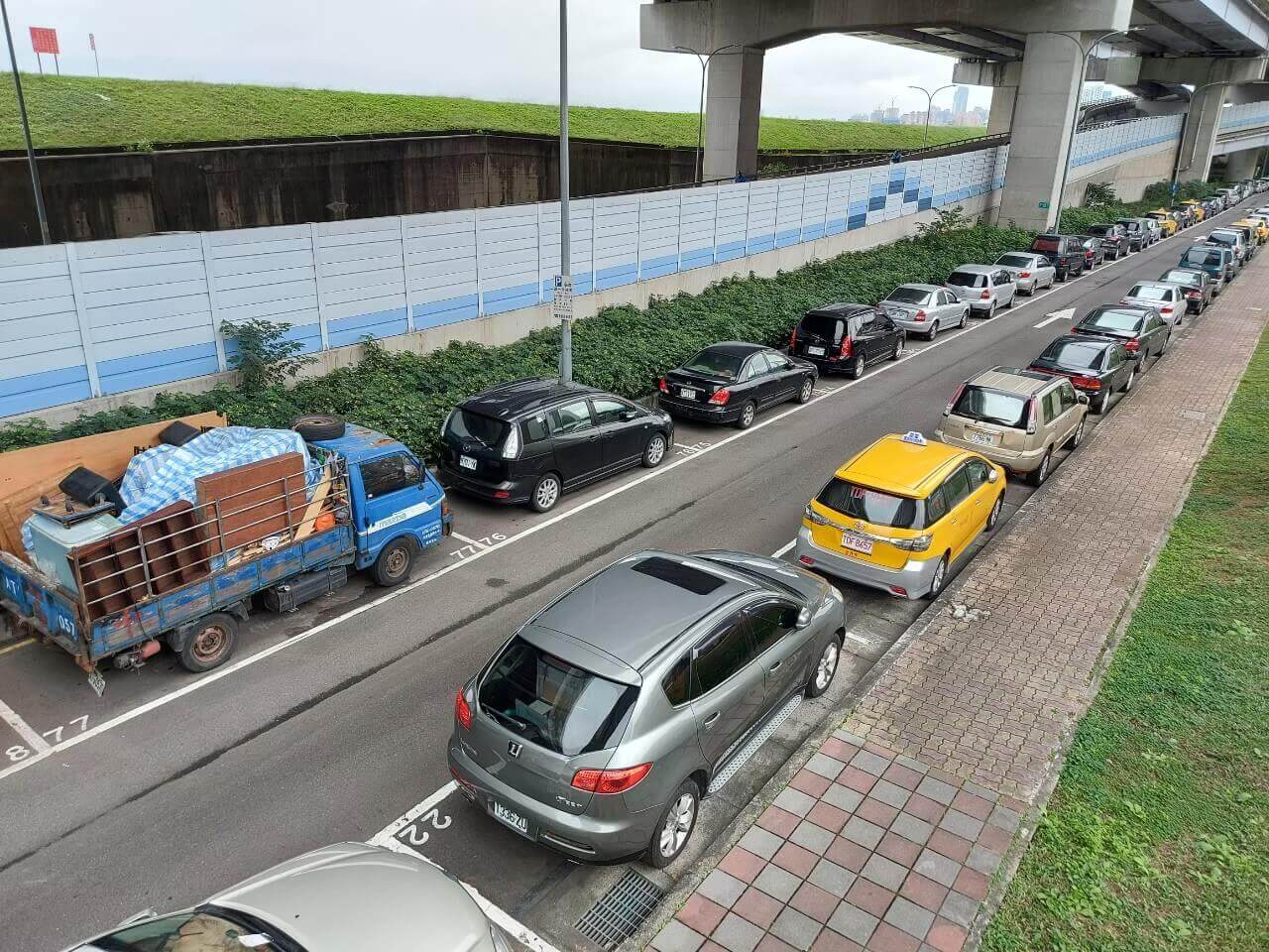 唯一通往鴨鴨公園的路就是這座在中興橋旁的人行天橋,下方有一排收費停車格,不過除非運氣很好,不然通常都是沒有位置的