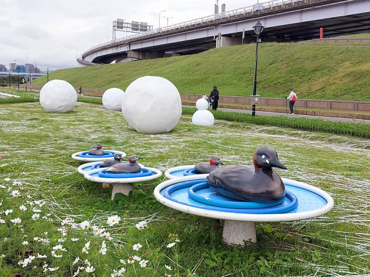 同樣都是在堤防裡面的公園,新北景點 鴨鴨公園因為附近非常不好停車,再加上遊樂設施並沒有新北景點 大都會公園這麼豐富,所以平常來訪的人很少,除非遇到了限時主題活動
