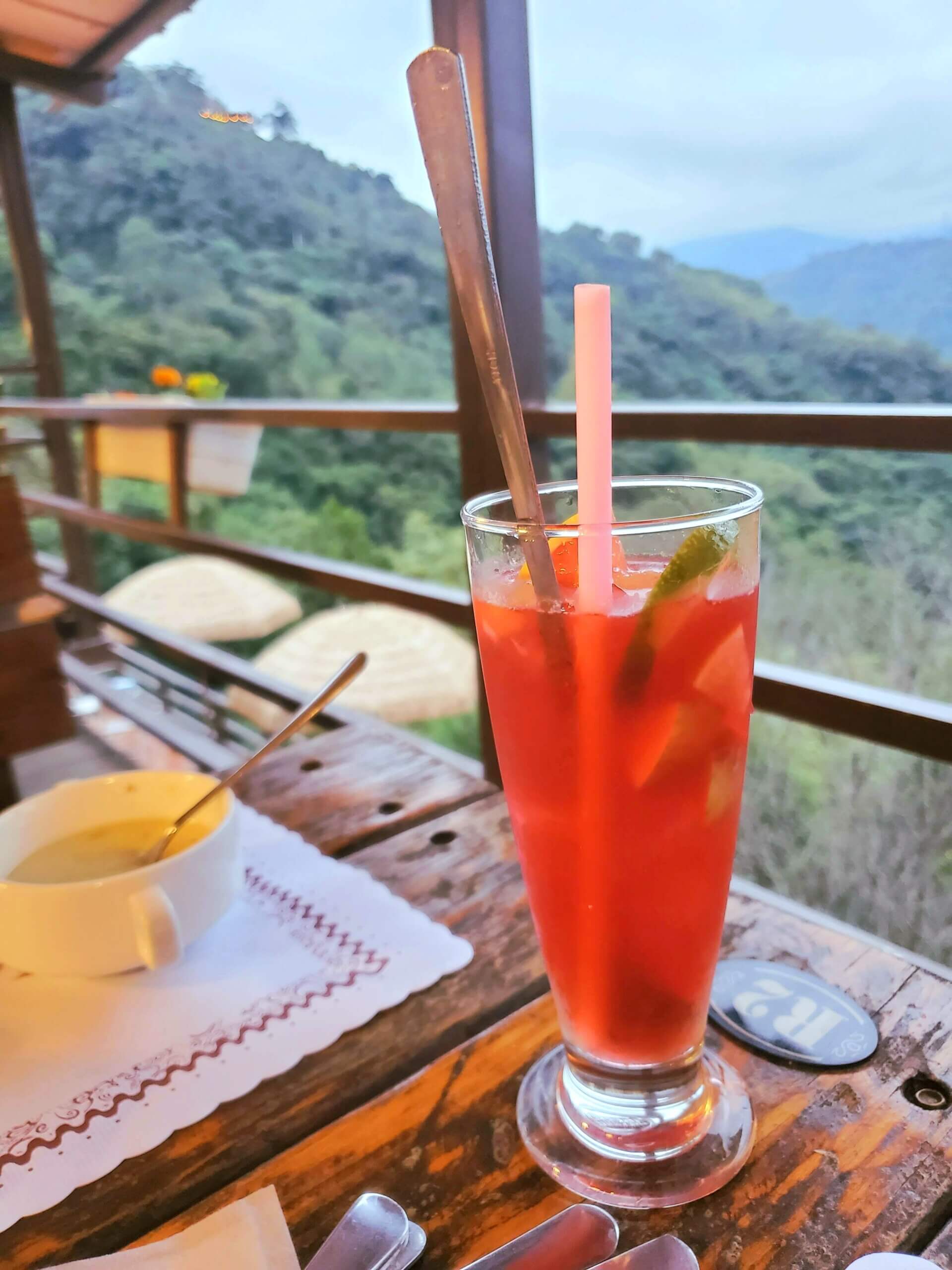 而我們這一次到訪最主要的部分就是風景,我們坐的戶外座位區,剛好直接可以眺望整個美景,大漢溪的溪水碧綠色的,還可以看到對面的新溪口吊橋