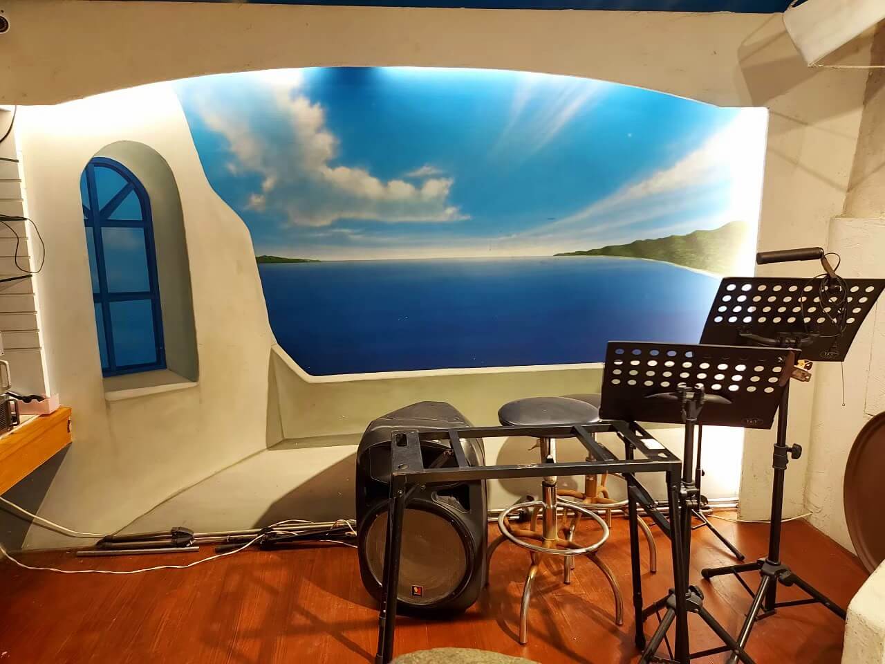 不過在室內座位區裡,有一個小舞台,是假日時駐唱歌手的表演舞台,可惜我們當天到訪並沒有駐唱歌手,沒辦法一飽耳福