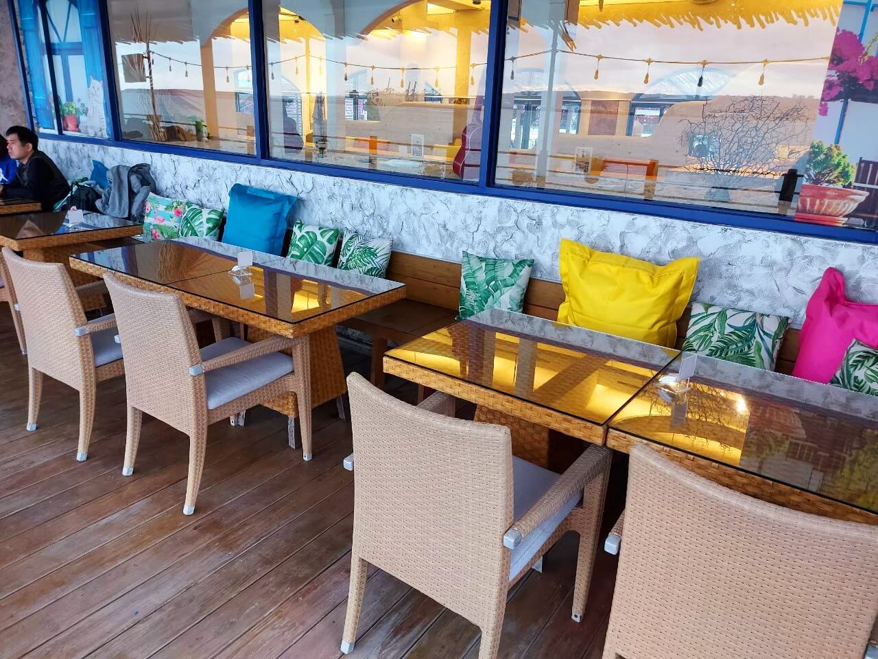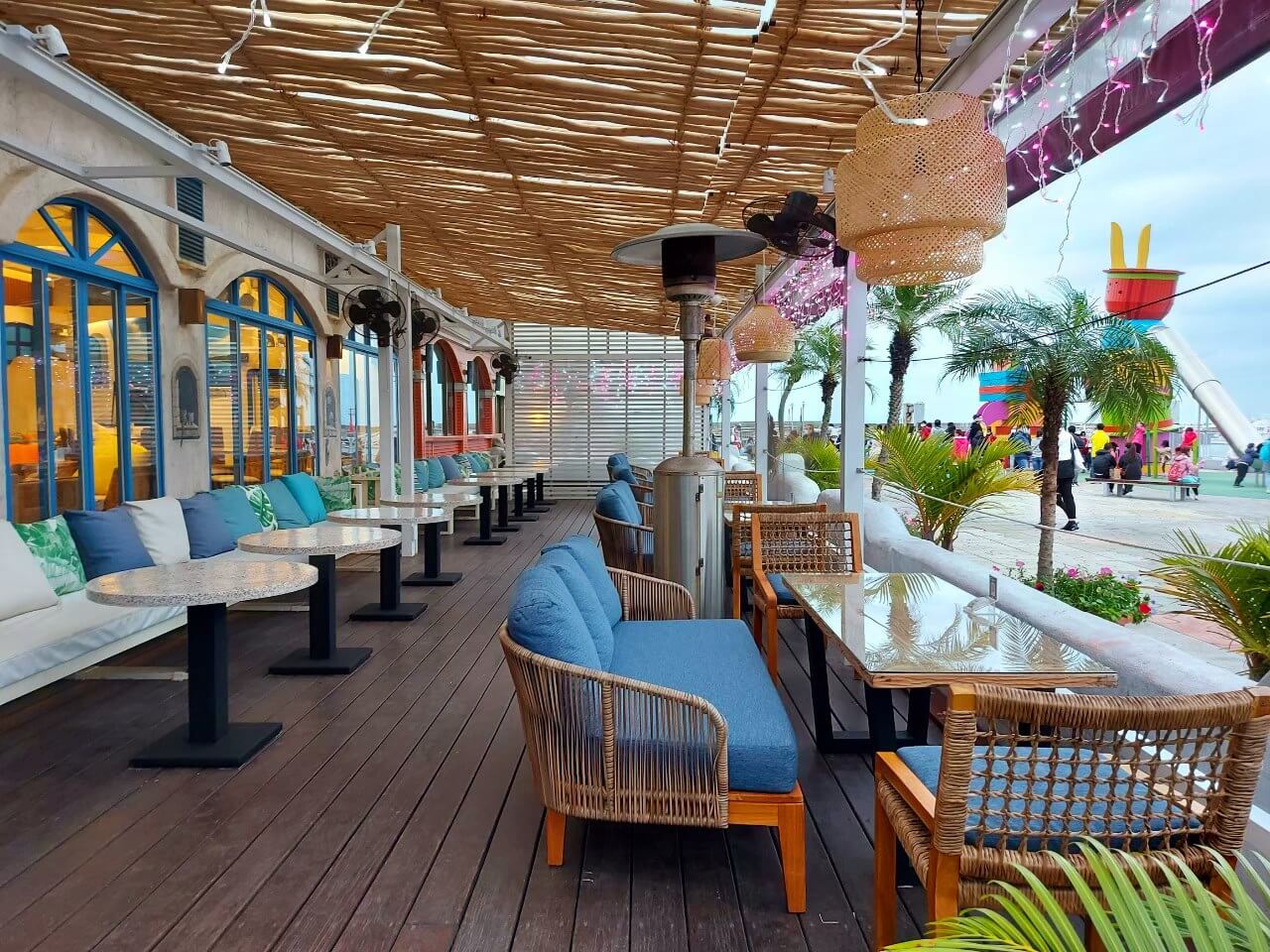 新北景點 漁人水岸景觀餐廳有分好幾個座位區,一個是面對廣場的戶外座位,還有一般的室內座位區,再來就是面對河岸的戶外座位區了