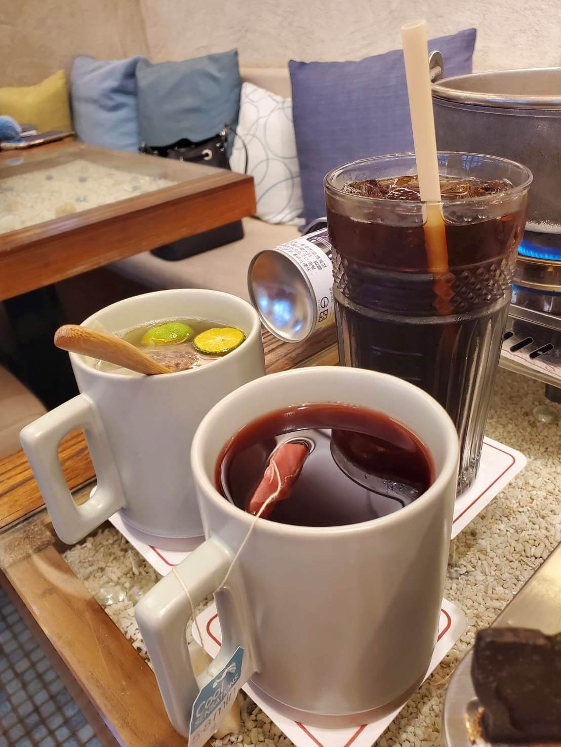 我們當天因為帶小孩又天氣冷是選擇坐在室內座位區,明明是四人座的座位,但是四個大人坐在一起覺得稍嫌擁擠,和隔壁座位的間隔也有點近,不過戶外座位區看起來似乎沒這個困擾