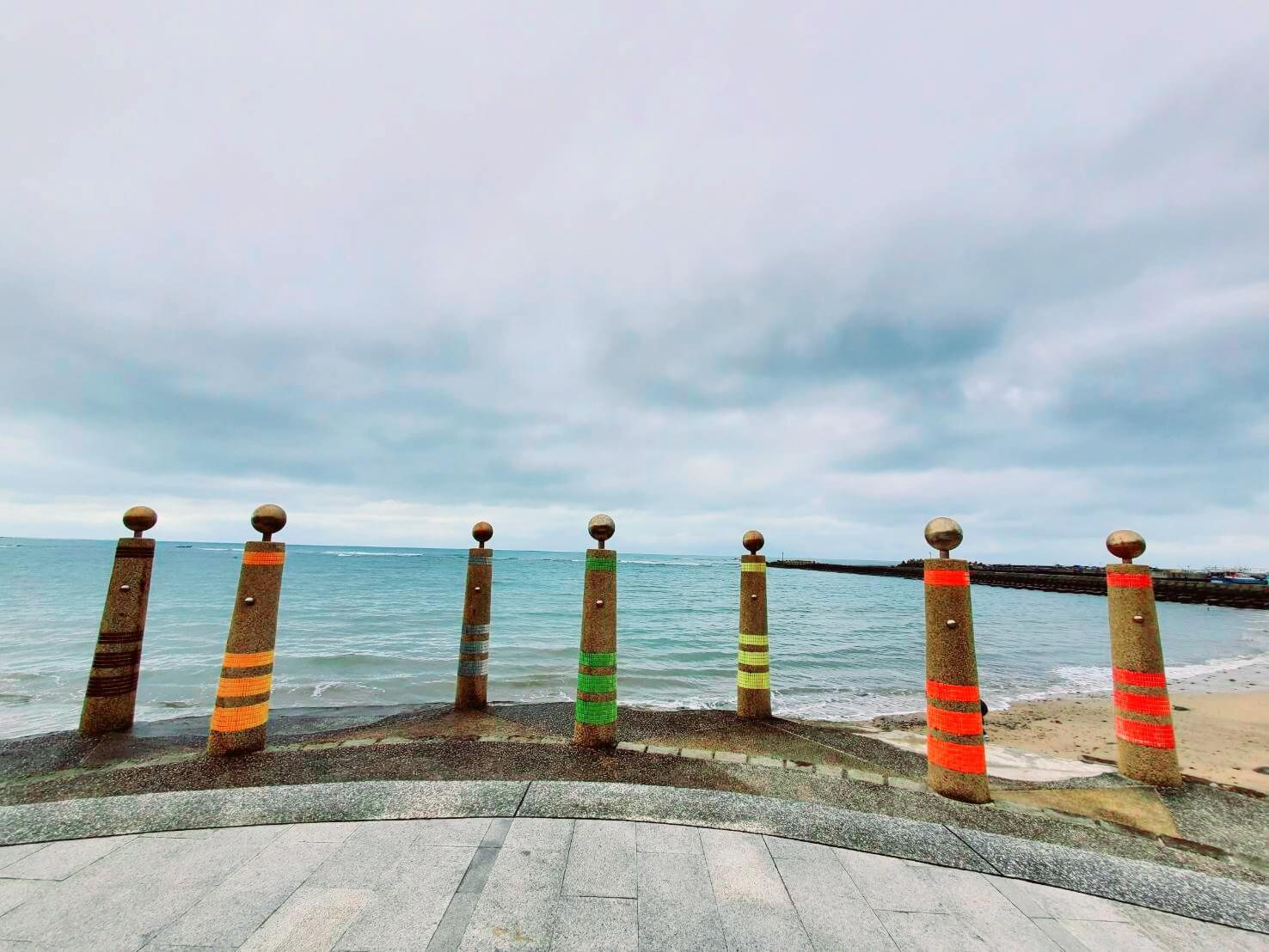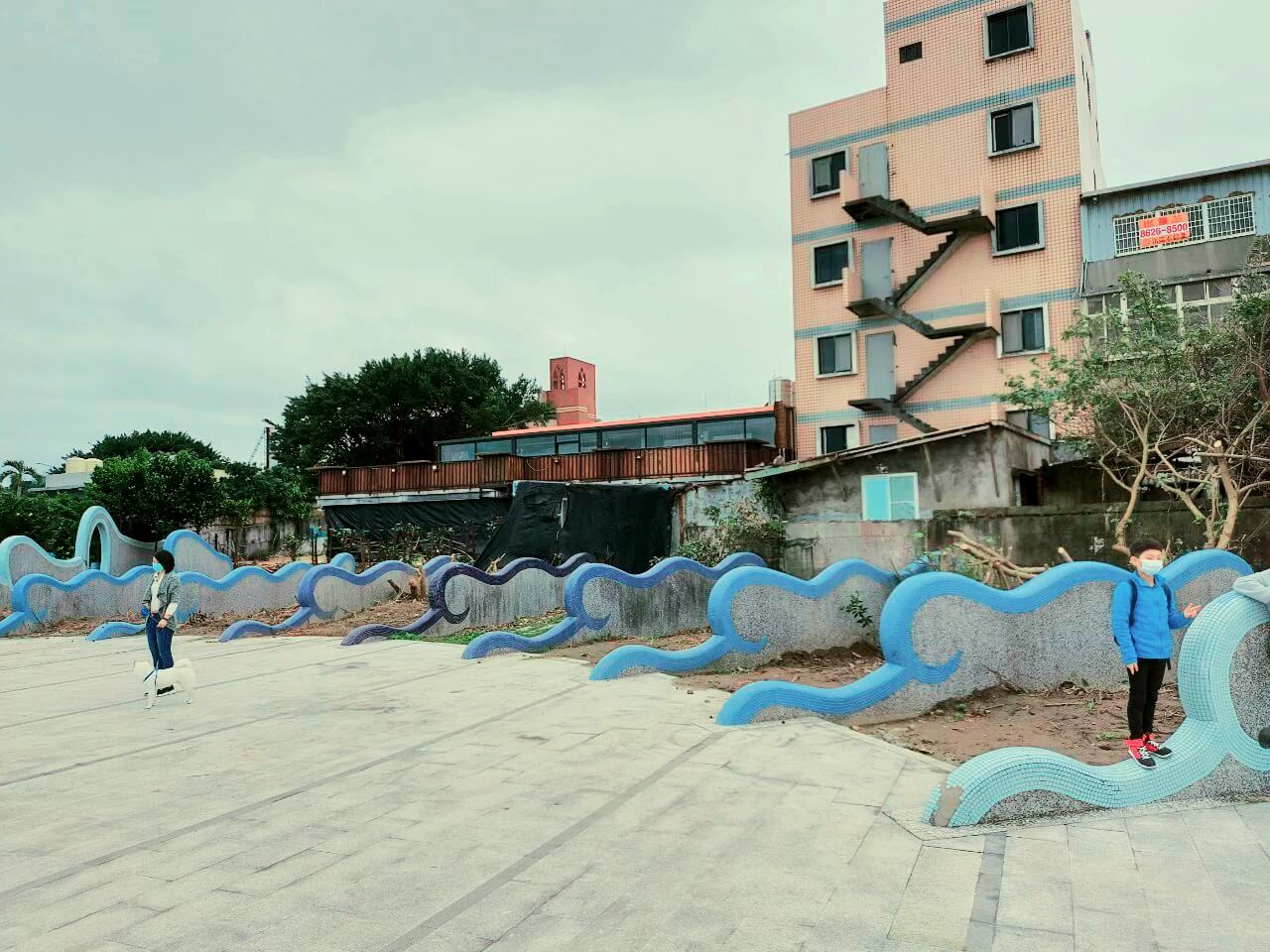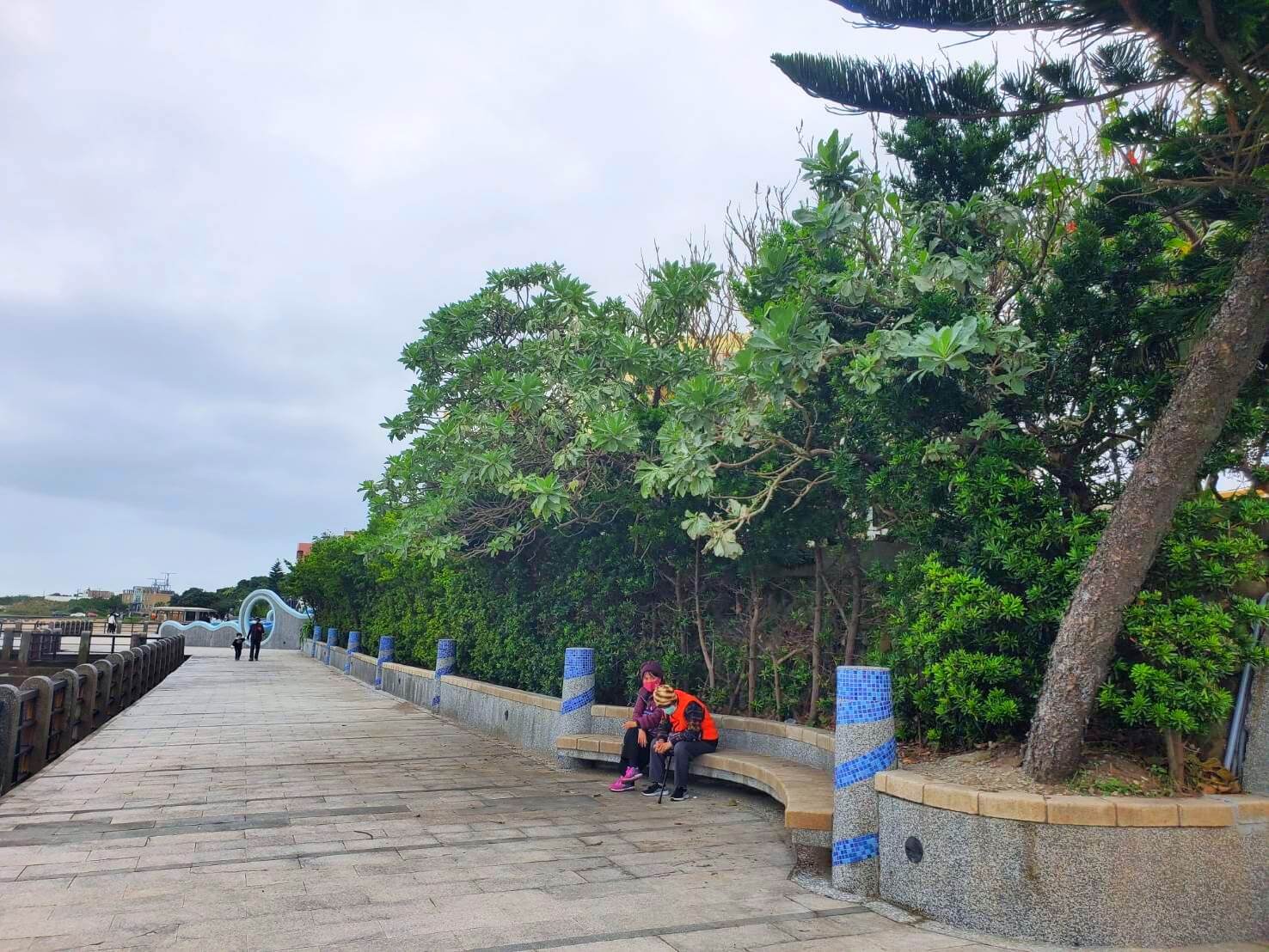 在新北景點 芝蘭公園的水藍色長廊旁邊,有沿著海岸線建造的人行步道,從這裡一直走會先經過一個小廣場,再接到淺水灣的地方