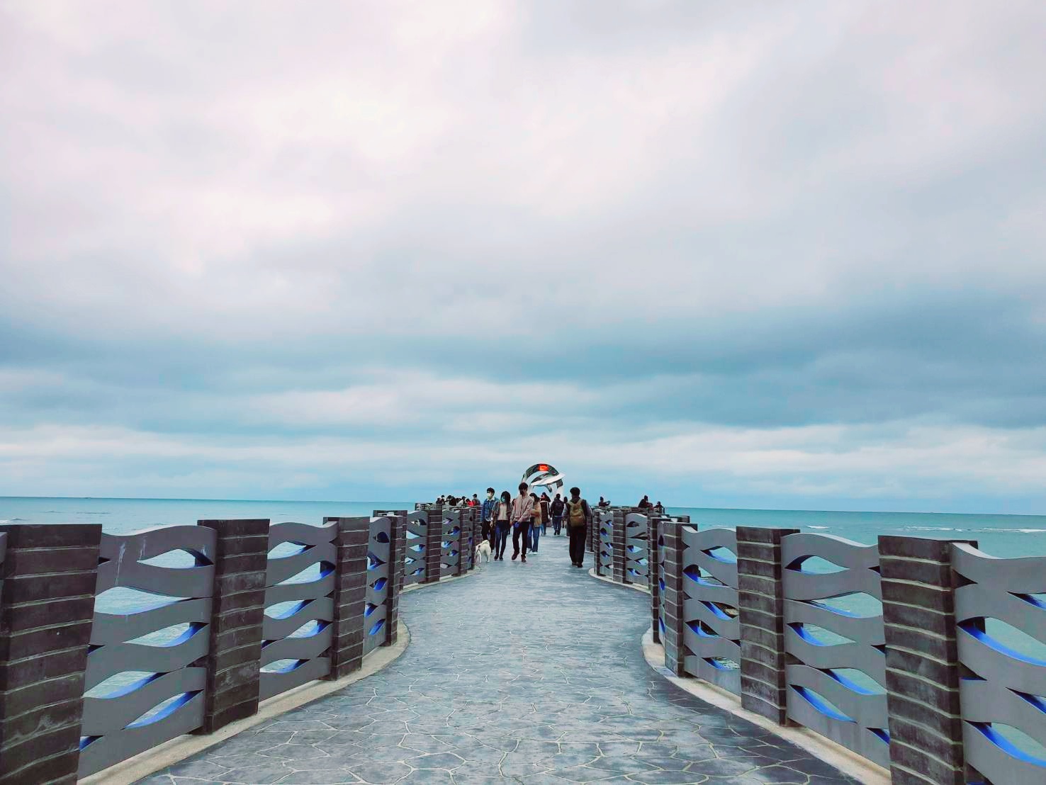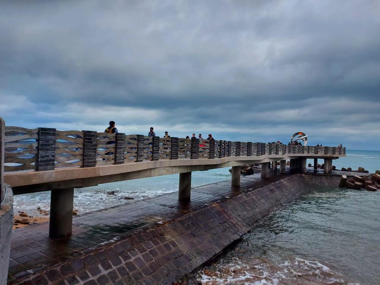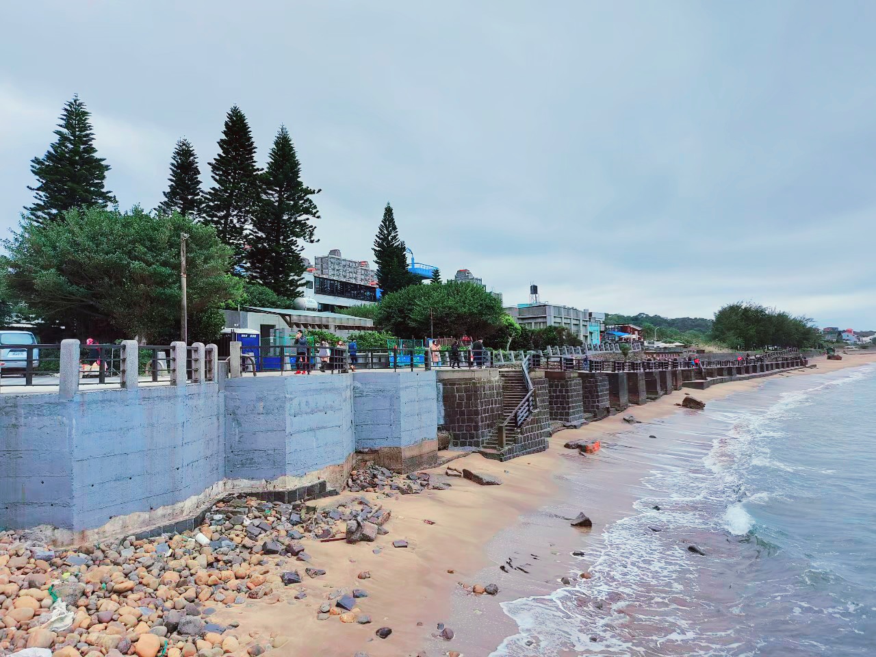 在新北景點 芝蘭公園的水藍色長廊旁邊,有沿著海岸線建造的人行步道,從這裡一直走會先經過一個小廣場,再接到淺水灣的地方