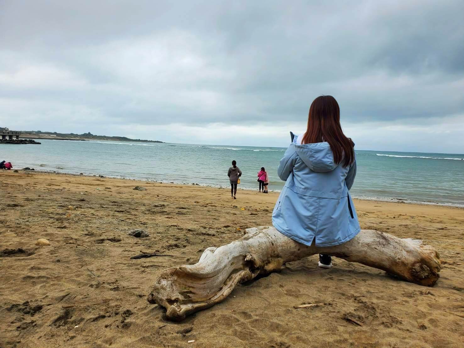 在新北景點 芝蘭公園也有一處小沙灘,我們當天來的時候沙灘上還有漂流木,整個超適合拍網美照,可惜當天天氣不好,拍出來的成品有點差強人意