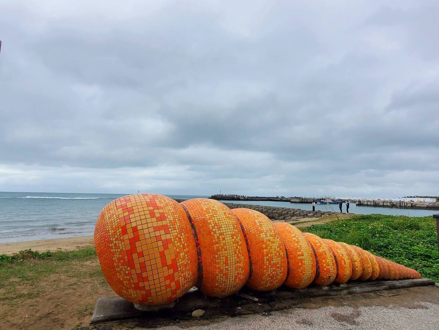 沙灘旁邊還有一個超大的橘色海螺,也是一個可以拍照的地方,而橘色海螺在這個海岸線上,成了最醒目的存在