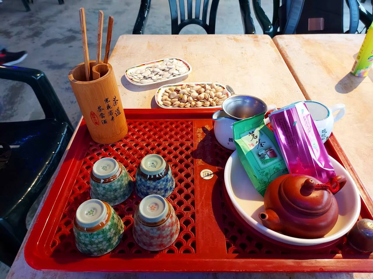 和櫃檯點完餐沒多久,茶具和小點就全部送齊了,茶具該有的幾乎都有,杯子上也都沒有殘留茶漬或是變色,一點也不馬虎
