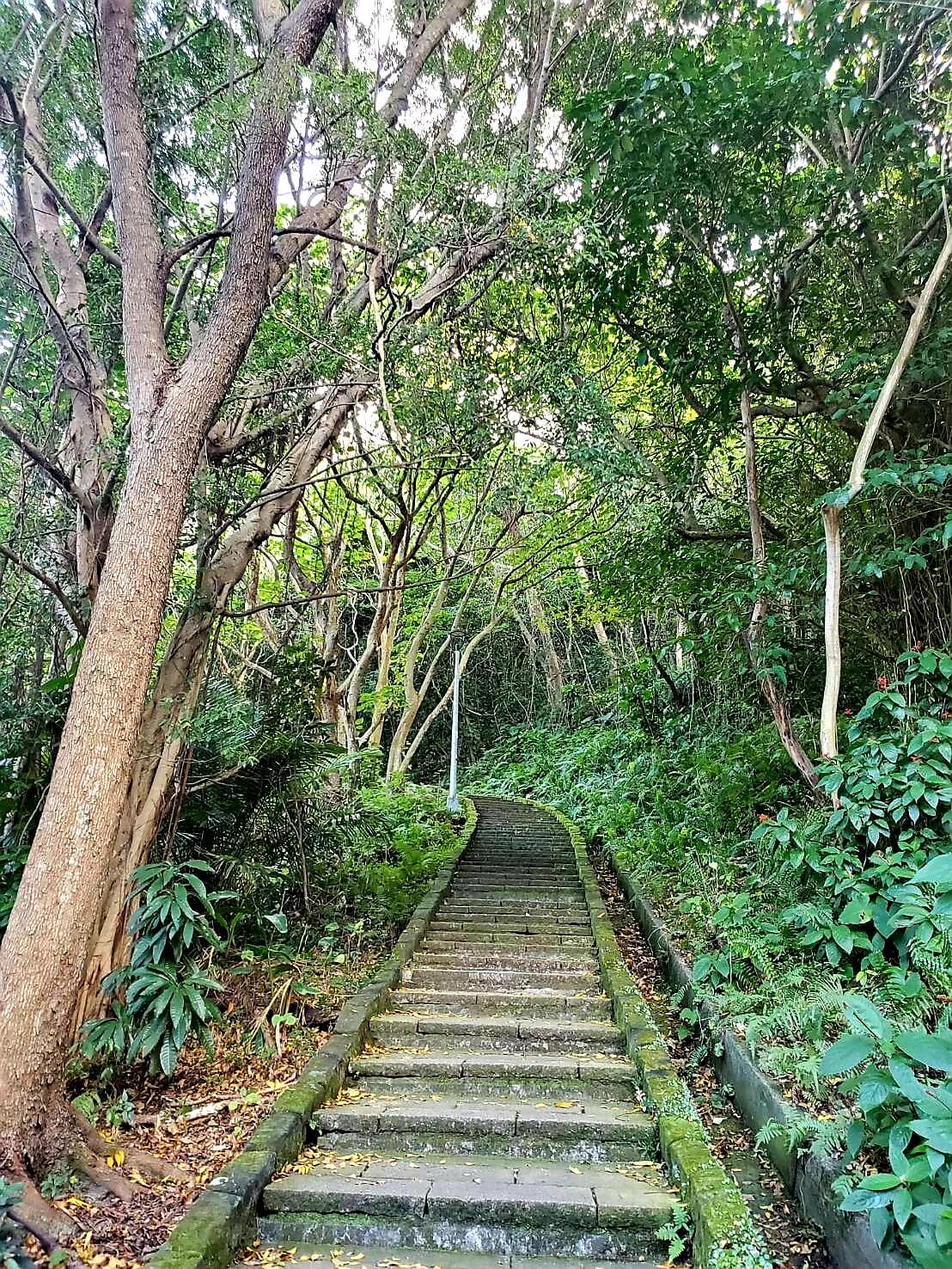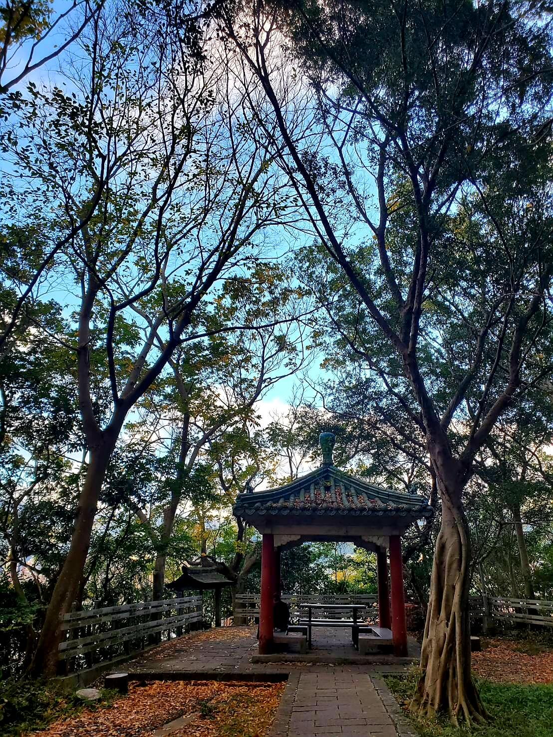 爬完樓梯以後,先看到的是一個可以休息的涼亭,周遭都是樹木環繞,感覺芬多精充滿了整個環境