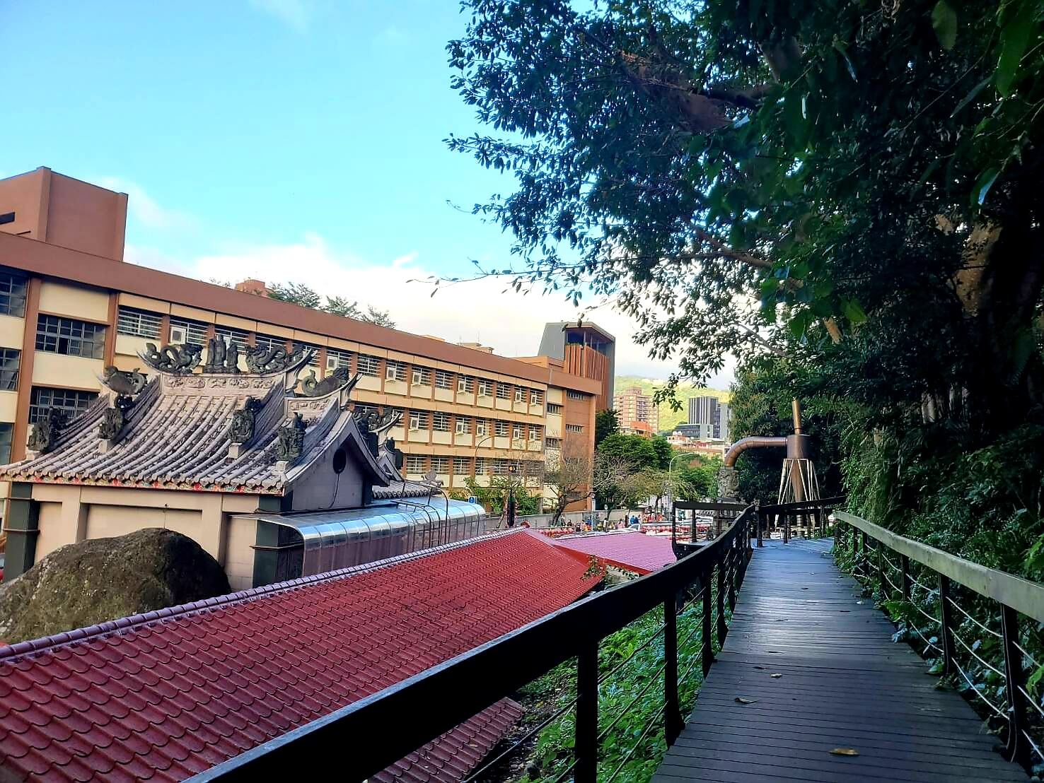 原本想沿著原路回去的我們,看到有一群人從另一個方向過來,好奇的我們就往那個方向走去,沒想到步道連接到芝山巖惠濟宮,原來這裡的步道都是相通的啊