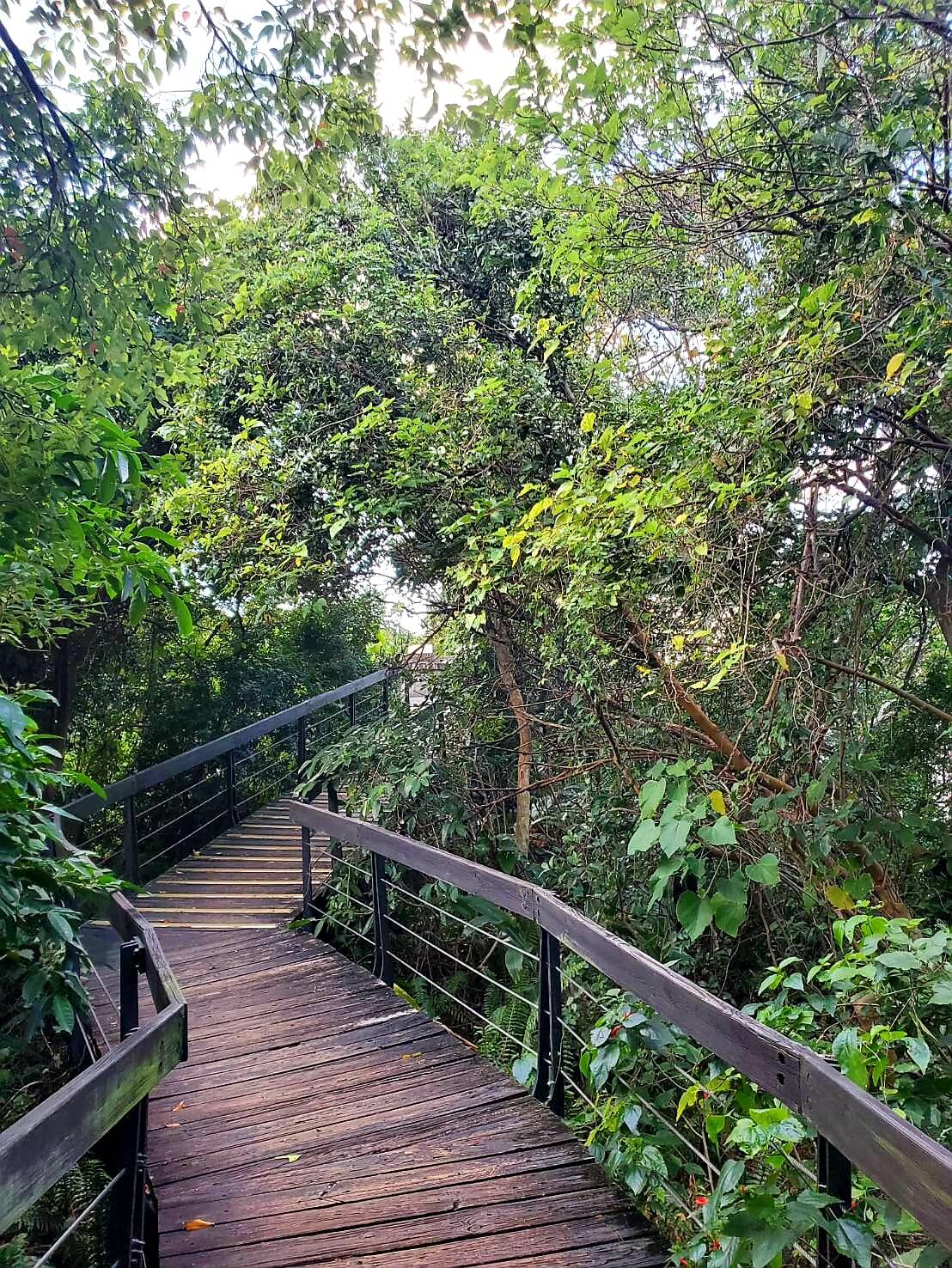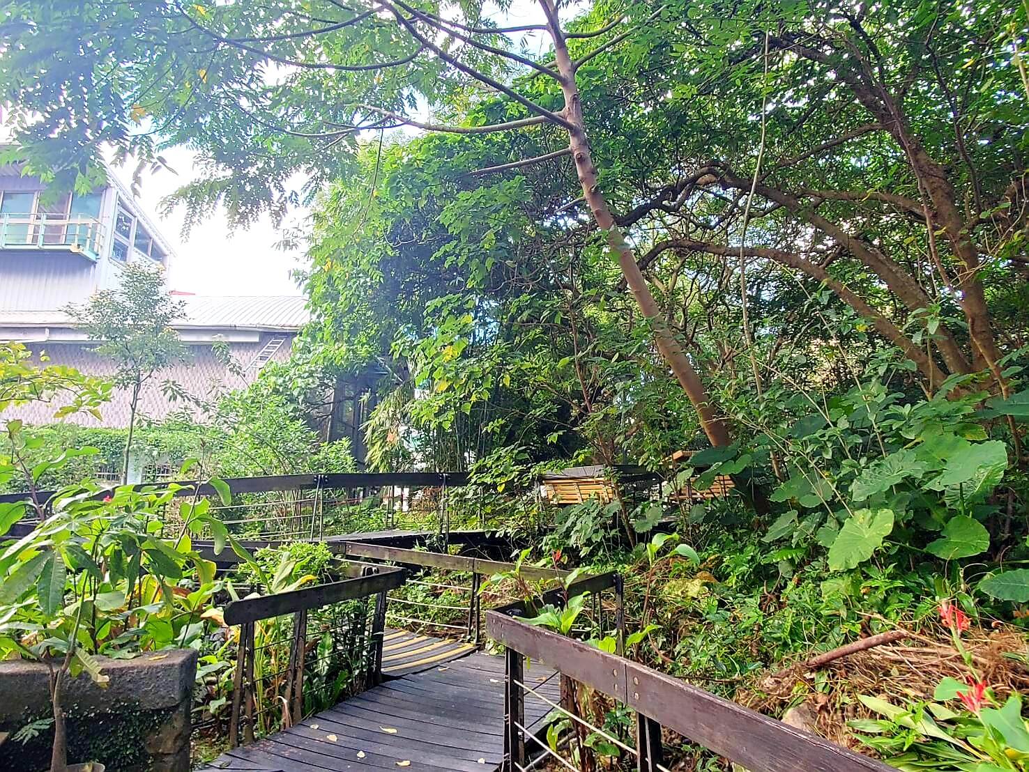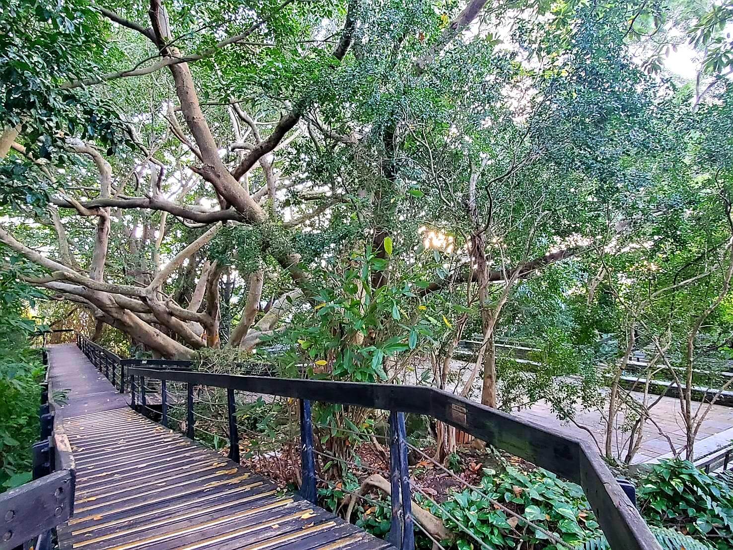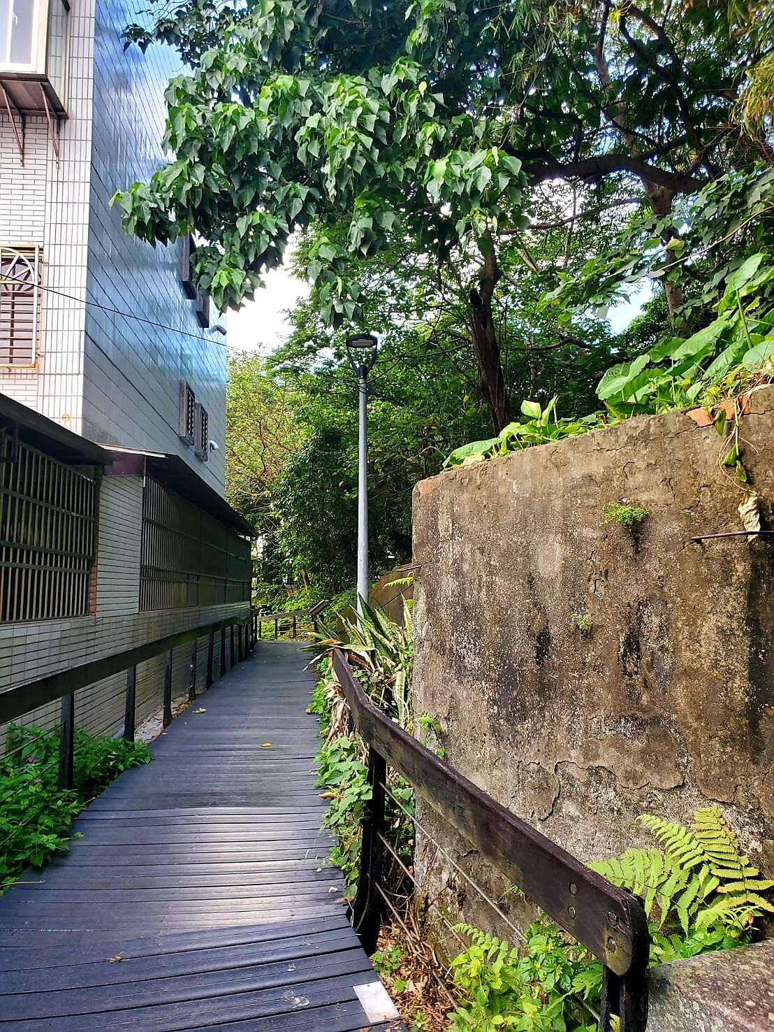 我們當天走到廣場最邊邊,才發現了一個木棧道的步道,不過步道看不到盡頭,而且看起來很像通往別人家裡的後花園,我跟小伙伴遲遲不知道該不該往前