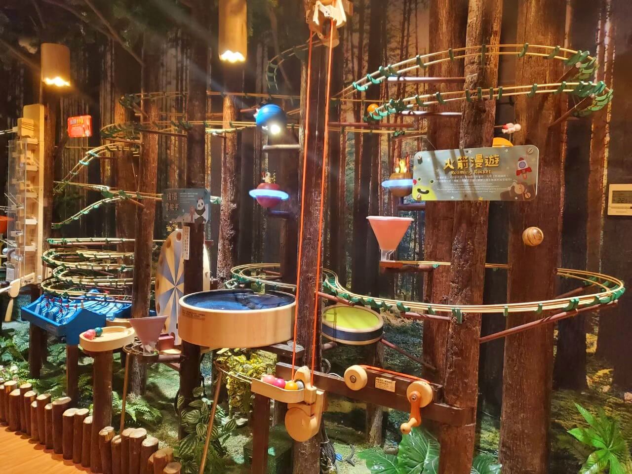 逛完樂天小熊展之後,我們還來到了「木育森林」,這裡是全用木頭打造的付費遊戲區,每一種遊具看起來都很有質感,有些還有教育性質,讓小朋友可以邊玩邊學