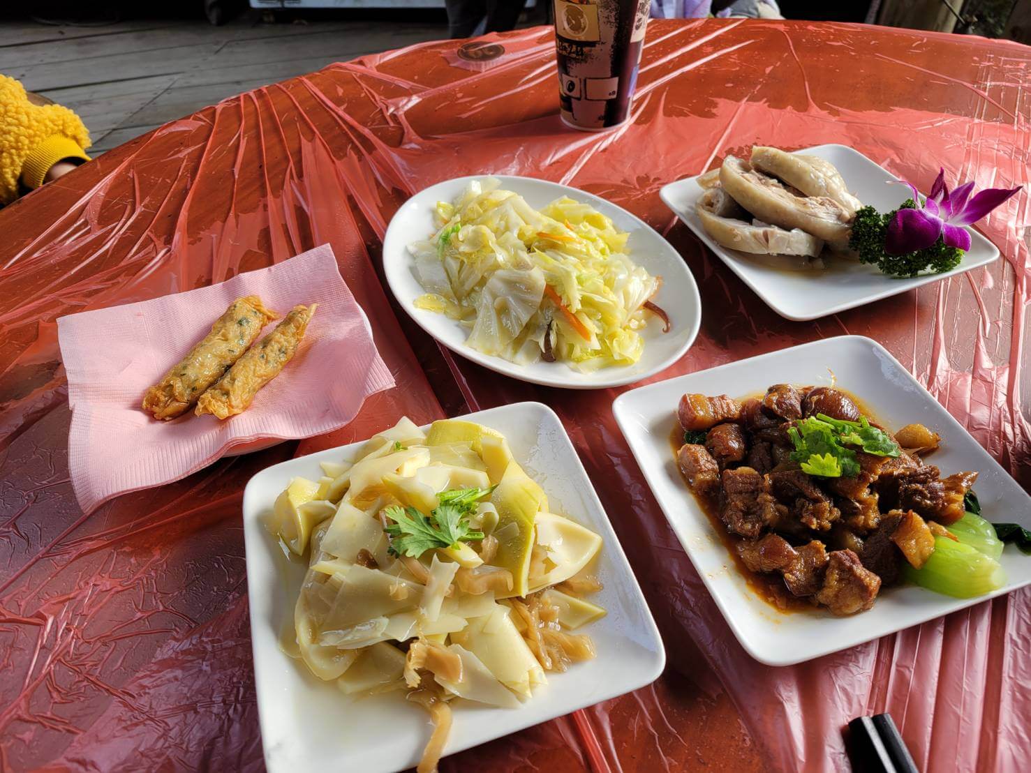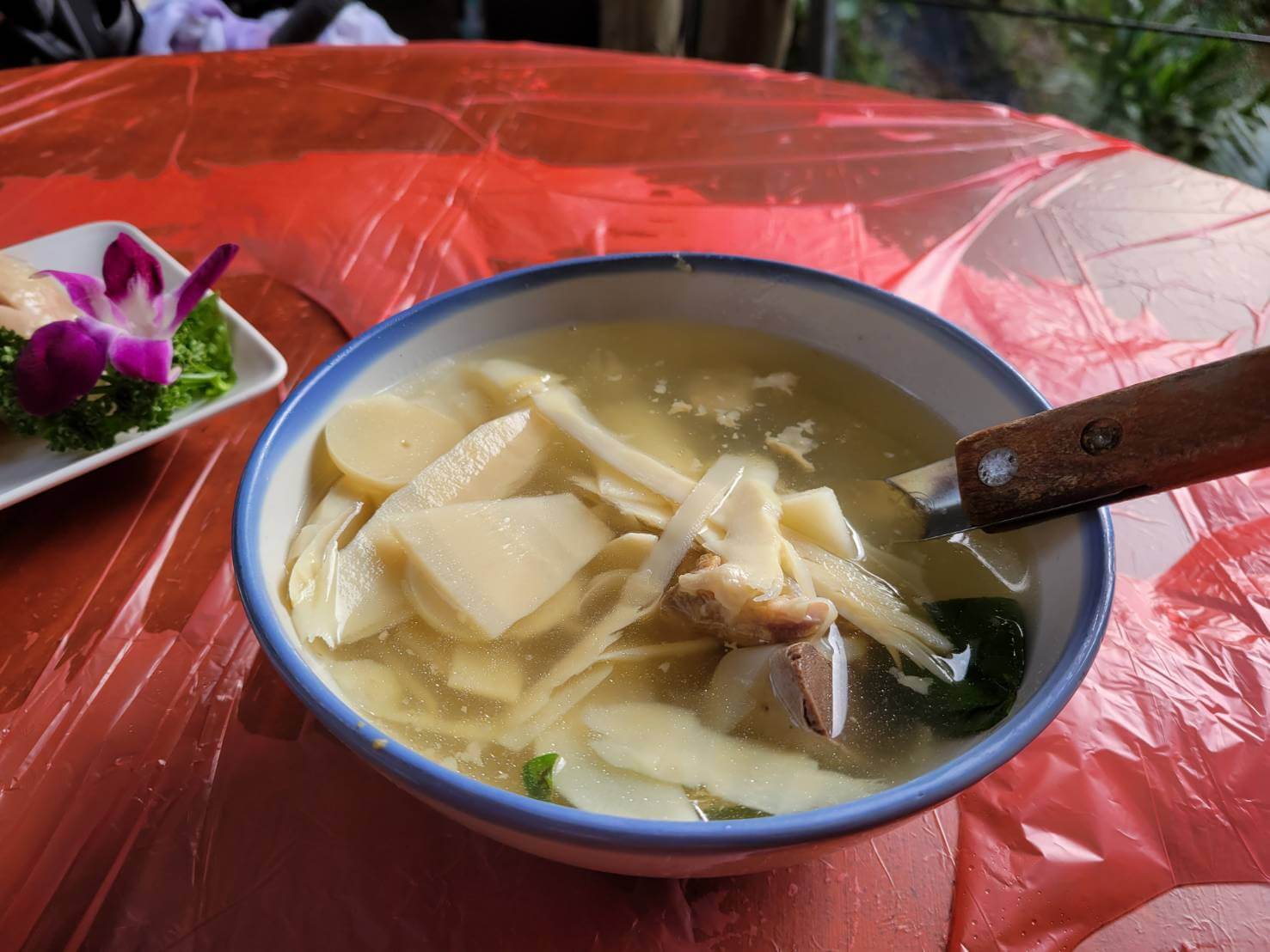 我們當天直接點了一份雙人套餐,再多單點一份高麗菜,份量比我們預期的還多,竹筍湯裡滿滿的都是竹筍片,