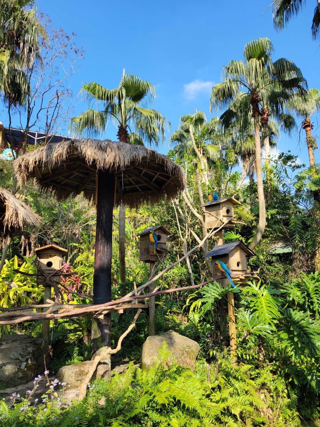 接著我們往園區裡面走,看到的是金剛鸚鵡島,這裡的金剛鸚鵡都沒有綁繩子,但是也沒看他們在園區裡面飛,而且金剛鸚鵡真的好大隻,當天還聽到小朋友在驚嘆