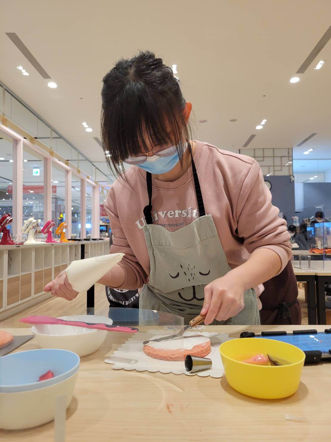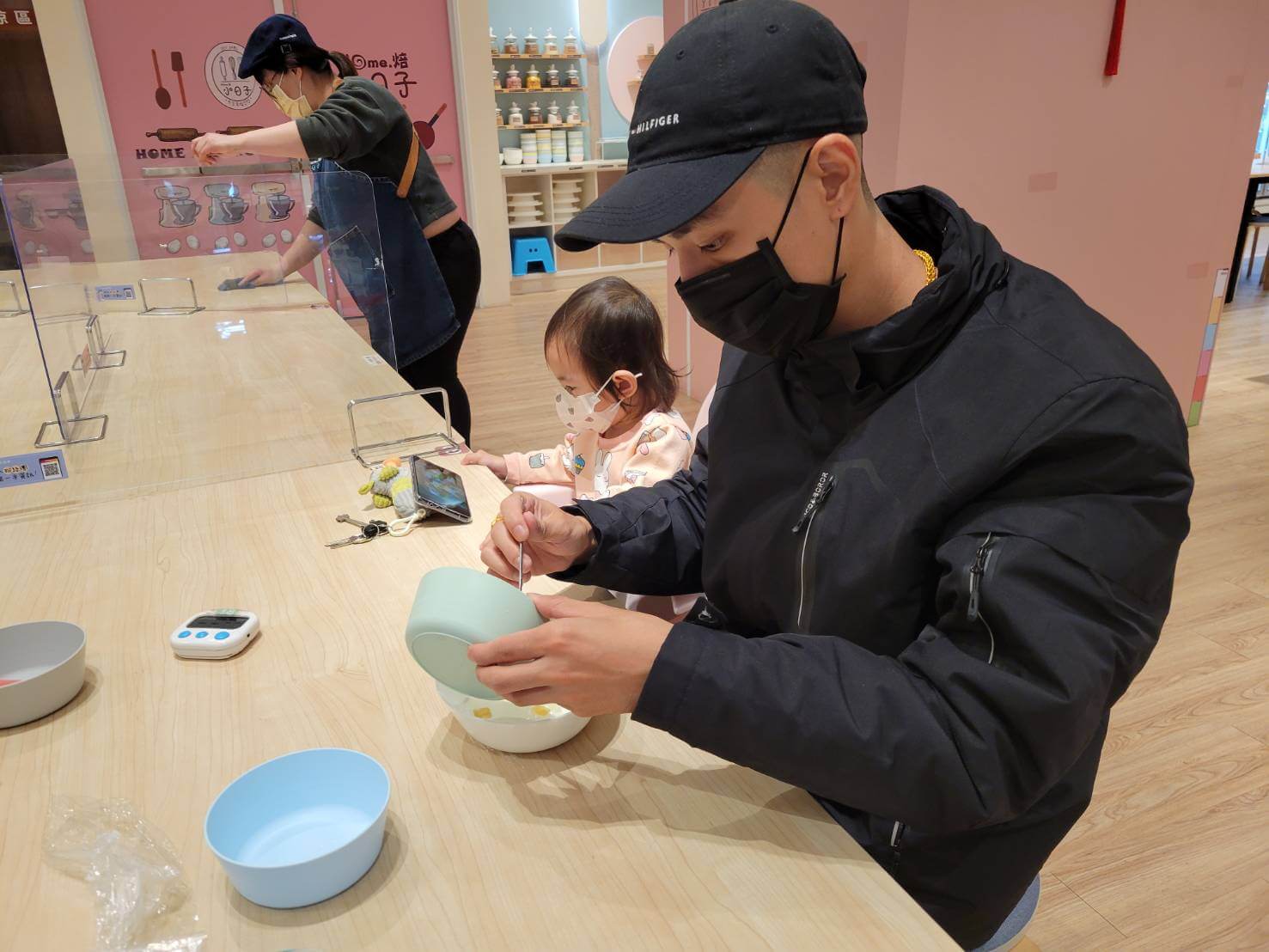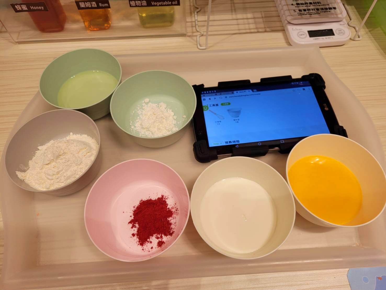 因為這一次只有我們三個人來,所以照顧媛媛的這個重責大任就交給了小伙伴,雖然我一個人就要一次做兩份甜點,但是非常樂在其中