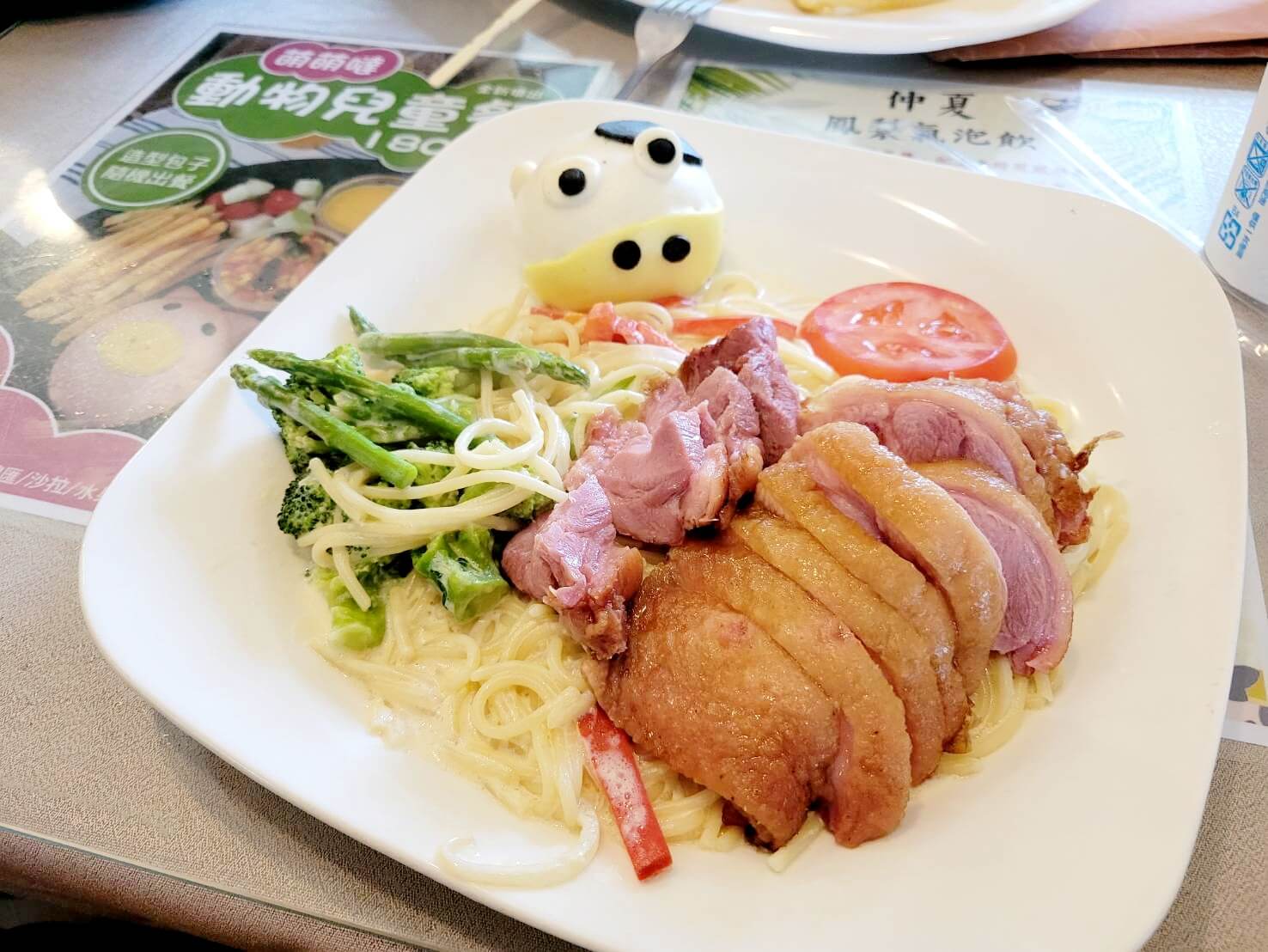 餐廳提供的餐點選擇不多,倒是兒童餐的部分很吸引我,有可愛的造型包子,看起來很童趣,但是我後來還是點了義大利麵套餐,沒想到套餐竟然也有附一顆造型包子,真是太可愛了~
