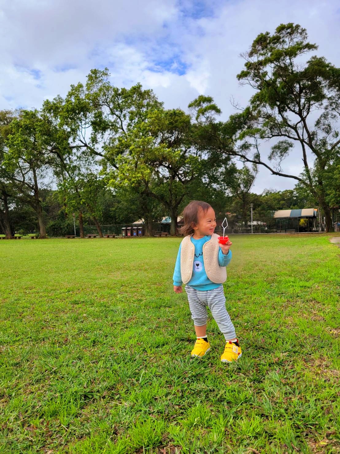 穿過烤肉區我們來到了一片大草地,很適合在這裡做一些團康活動,當天到訪的時候,整個草地只有我們,媛媛就在這裡跑來跑去,玩的不亦樂乎
