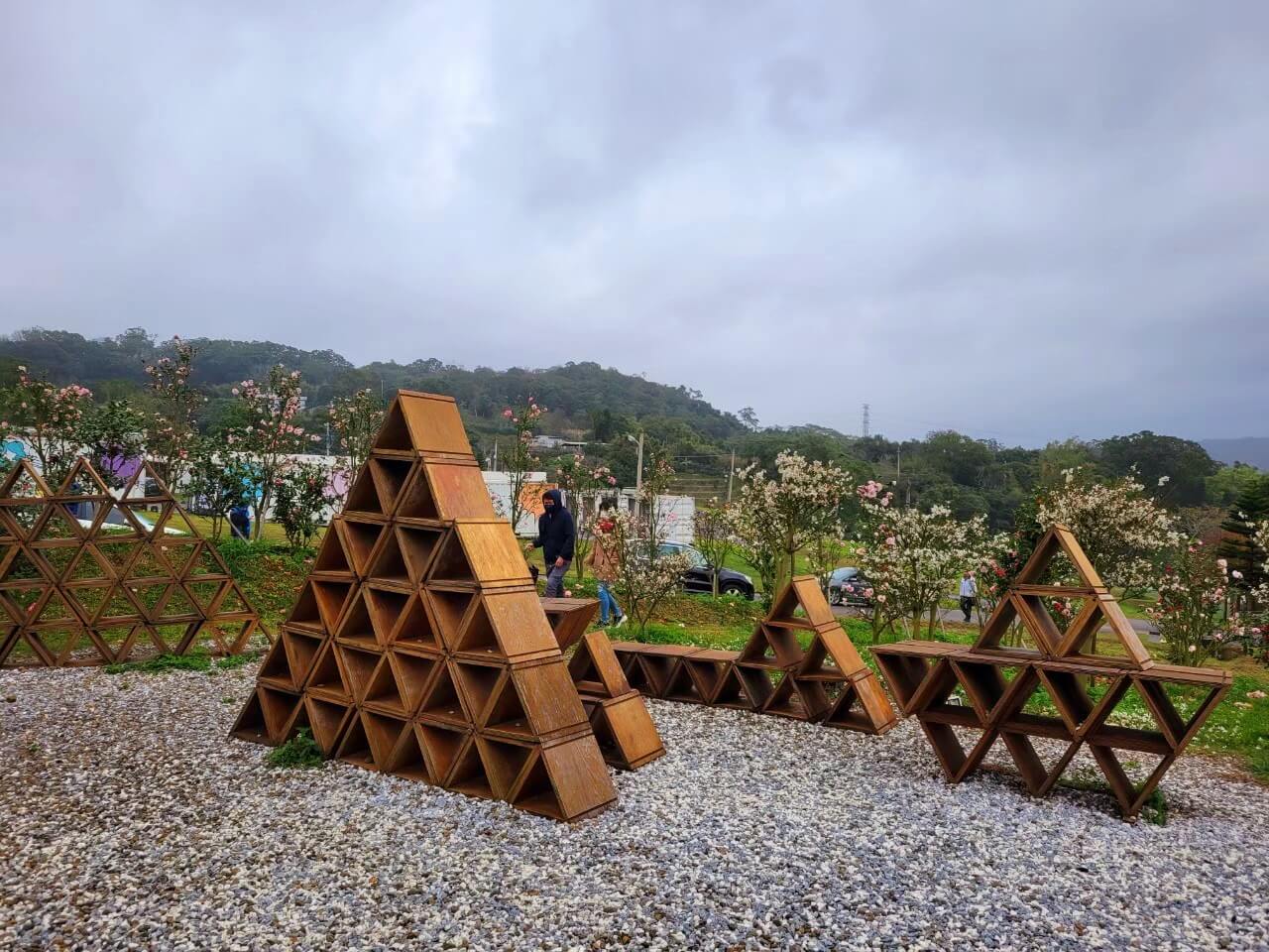 新竹景點 雲夢山丘的餐廳是在山下的部分,在往餐廳的路上,可以看到台開積木概念館,是用木頭搭建而成的金字塔,也是新竹景點 雲夢山丘的拍照打卡點之一