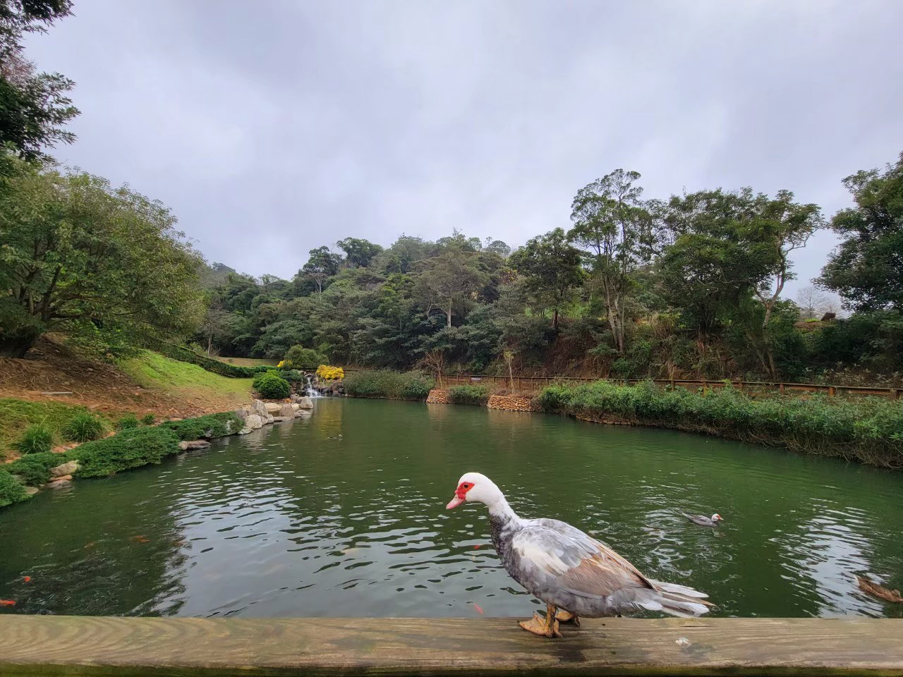 在停車場旁邊最近的是百雀園,據說可以在這邊看到孔雀,不過我們這天運氣不好,只有看到一些鴨子