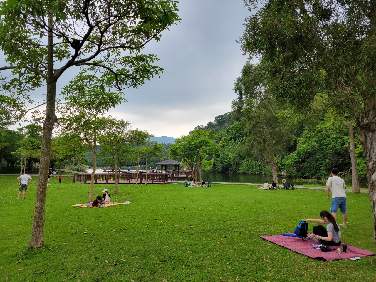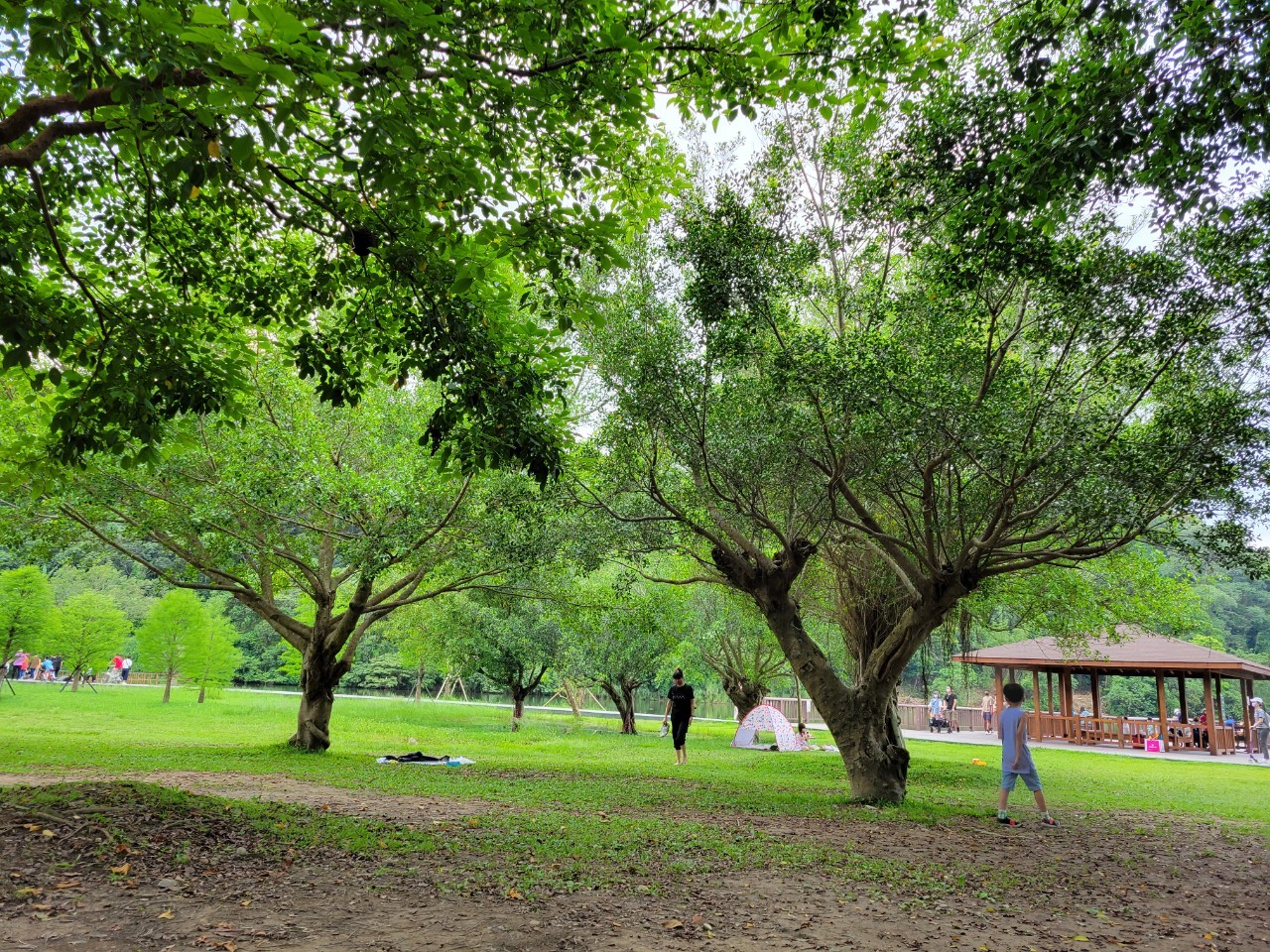 一旁有好幾處大草皮,所以蠻多人都是帶著帳篷或野餐墊,這樣就不擔心沒地方坐著休息