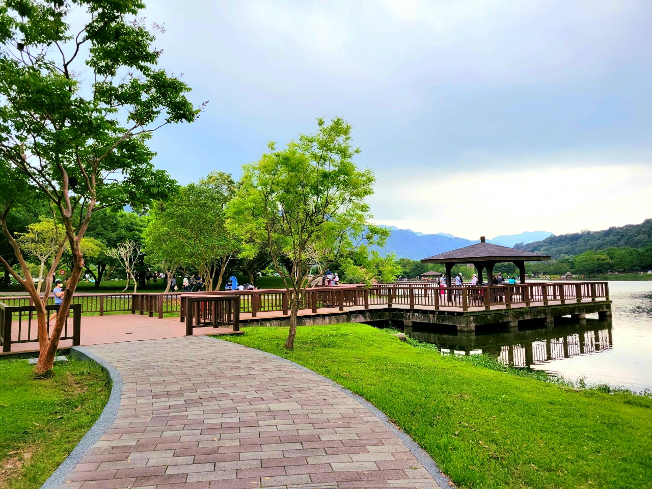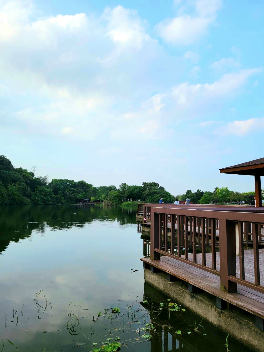 我們沿著桃園景點 三坑自然生態公園的環湖步道走,這裡的景色很漂亮,真的很適合假日悠閒走走散步的地方