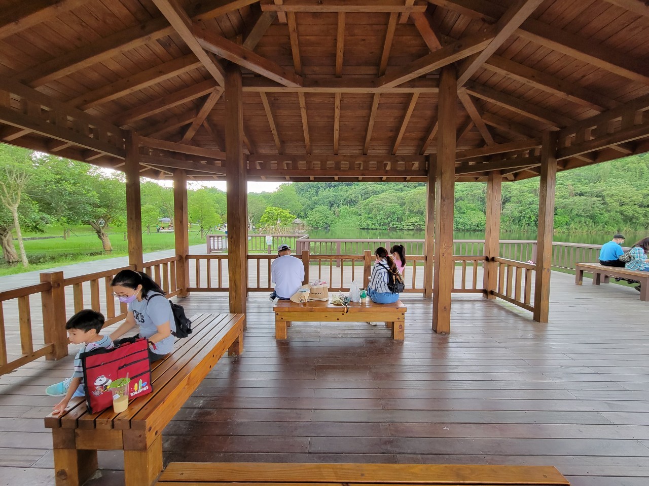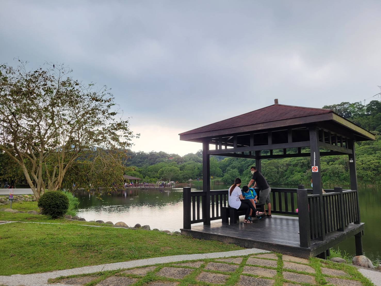 桃園景點 三坑自然生態公園最明顯的地標就是中間的湖泊,步道也是繞著這個湖泊,不過桃園景點 三坑自然生態公園的休息區蠻少的,除了幾個涼亭以外,就沒有了