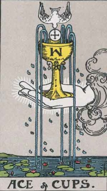 在小阿爾克那的結構中,Ace 總是象徵開端,而聖杯一則是心靈之水的第一滴。