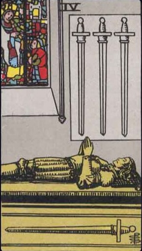 而寶劍四則是整個寶劍旅程中的「靜默時刻」,介於激烈衝突的寶劍三與思辨抉擇的寶劍五之間。