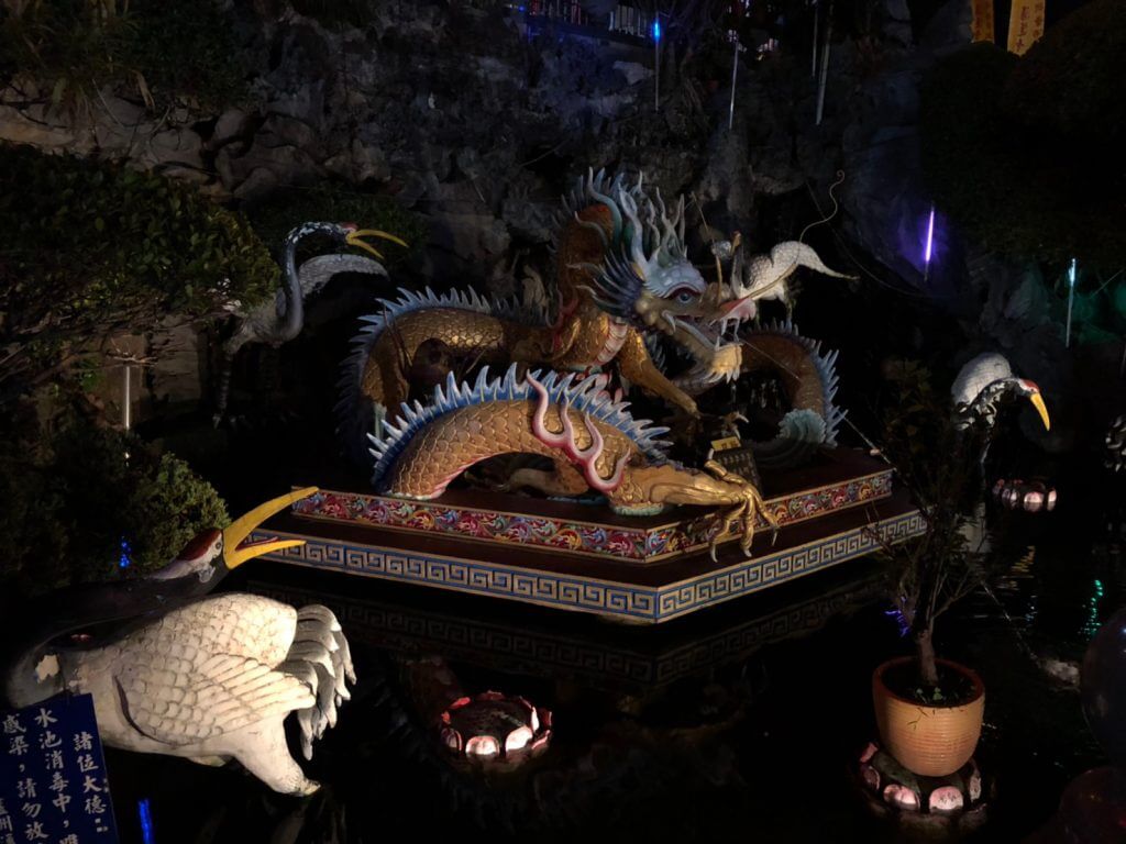 在湧蓮寺的前面有一個鯉魚池,而中間那隻會噴水的龍,在之前有重新建造過,成為了現在的這個樣子,而池子裡的鯉魚每一隻都胖嘟嘟的,湧蓮寺會有固定的人餵食,所以大家不要自己帶飼料投食哦