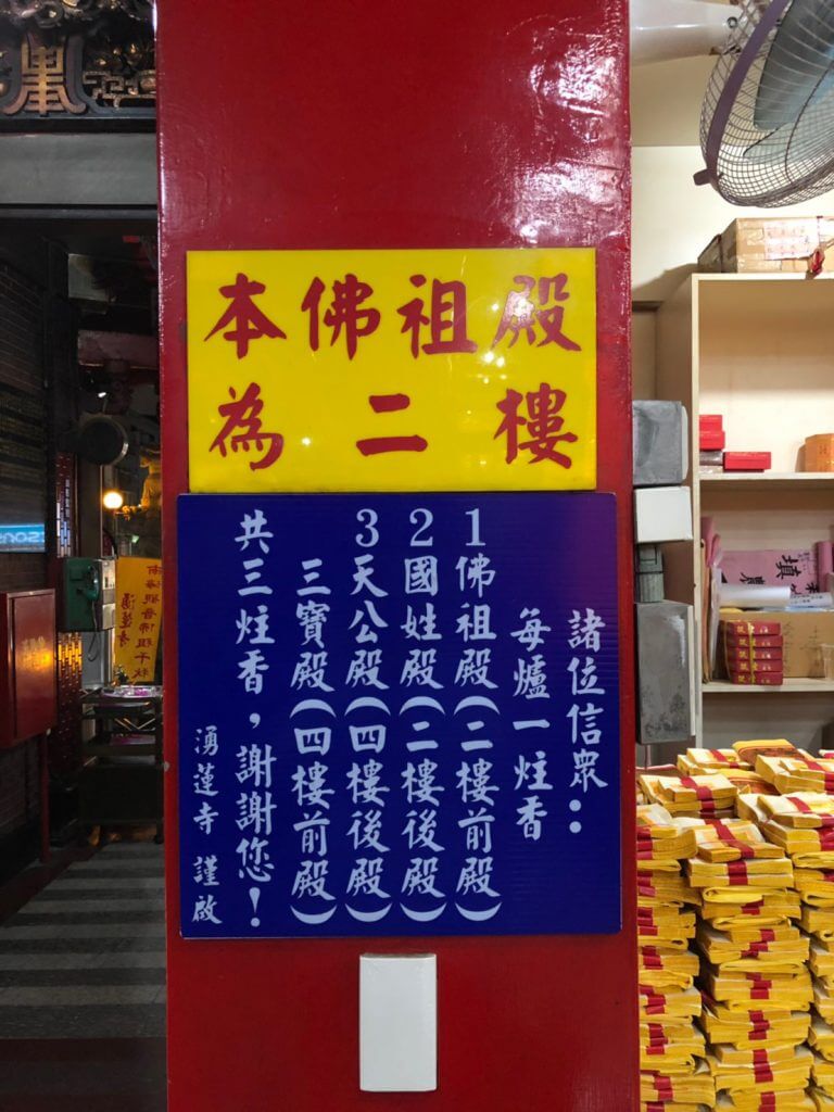 我不知道正確的順序是怎麼拜,不過我們家一直以來都是先前殿-佛祖殿>爬上4樓先拜前面的三寶殿>在到後方的玉皇殿>最後再到樓下的後殿-延平郡王,供大家參考