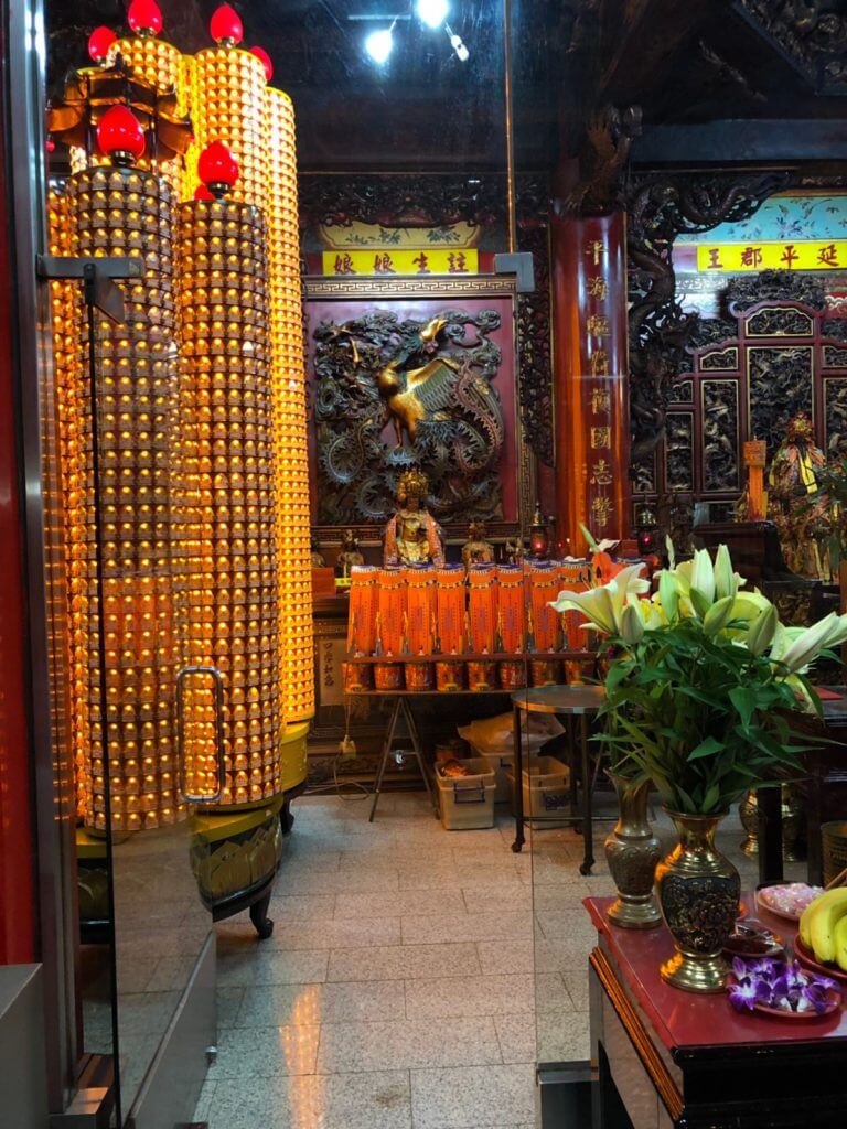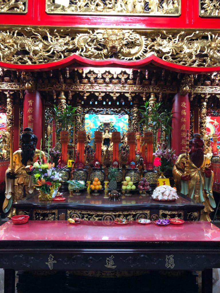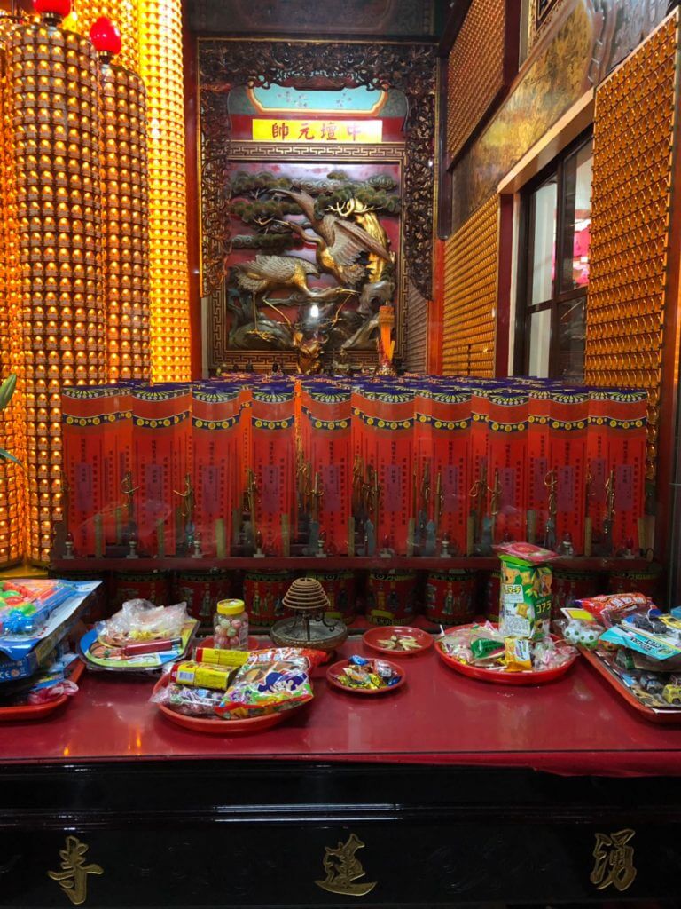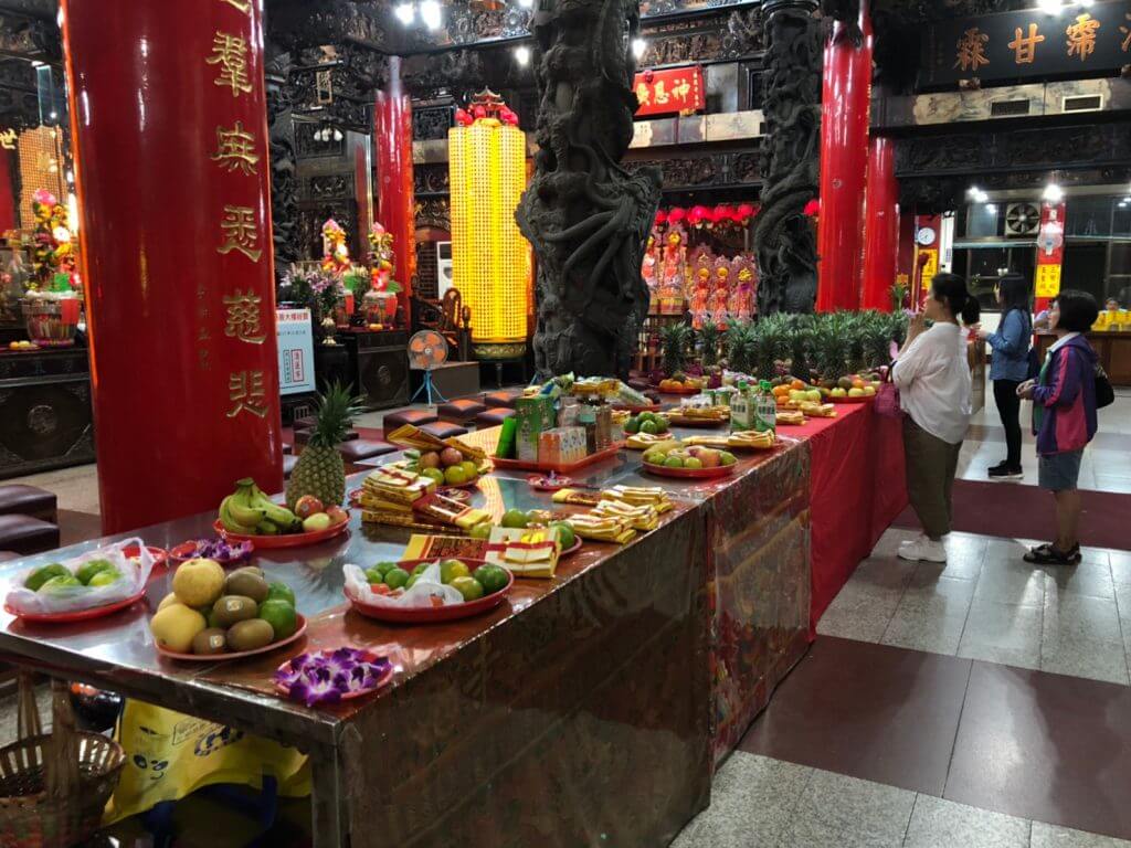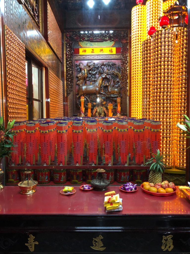 這樣拜了一輪下來後,會發現其實湧蓮寺是一間供奉很多很多神明的大廟,而且每一尊神像前都會設立一張桌子提供信徒放置供品,尤其是當天如果是此神明的生日,祂前面桌子上的供品絕對滿滿的