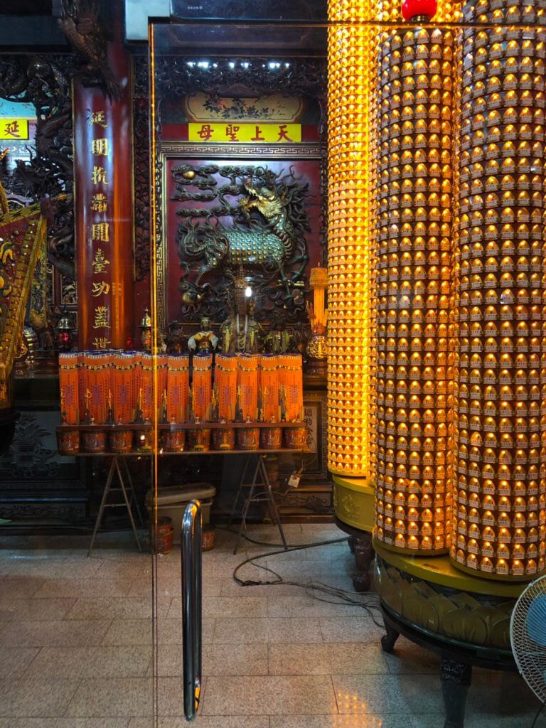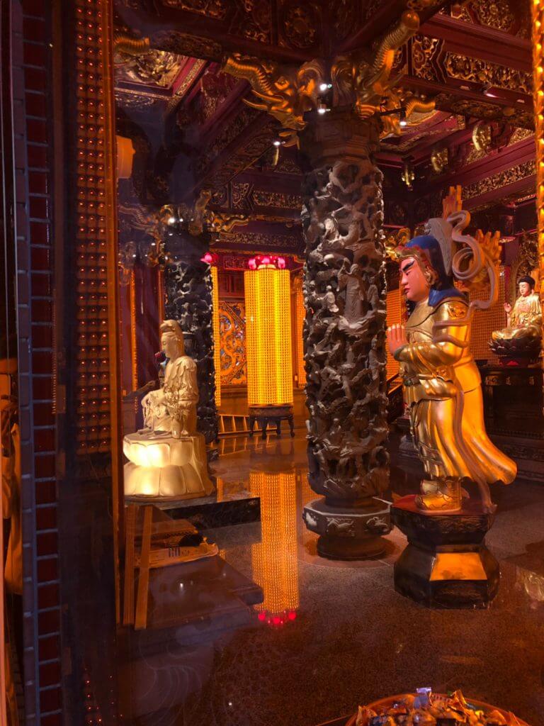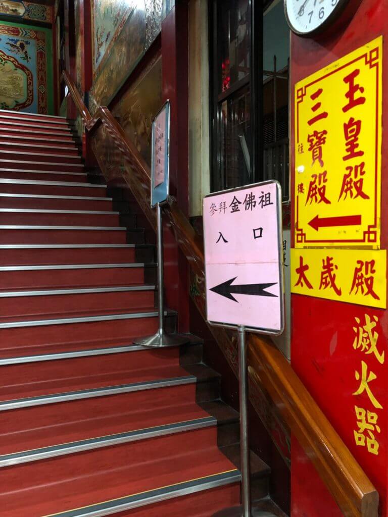 接著我們順著參拜方向爬樓梯來到了位於4樓的前殿-三寶殿,而三寶殿有一座用1萬兩黃金打造而成的觀音像,在白天的時候,有開放信徒近距離觀賞,只是開放時間只到晚上5點
