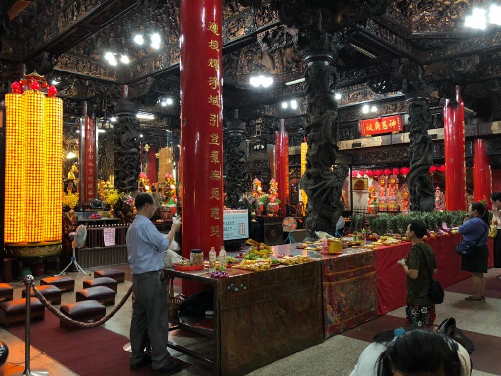 當天我們來到湧蓮寺的時候,也沒有什麼大日子,但是還是有不少香客前來參拜,而到了中元節這種大日子,甚至在夜市的馬路上擺上了好幾張桌子,讓香客能夠一起普渡,看得出來湧蓮寺是一個香火鼎盛的寺廟,可以說是蘆洲人重要的寺廟之一