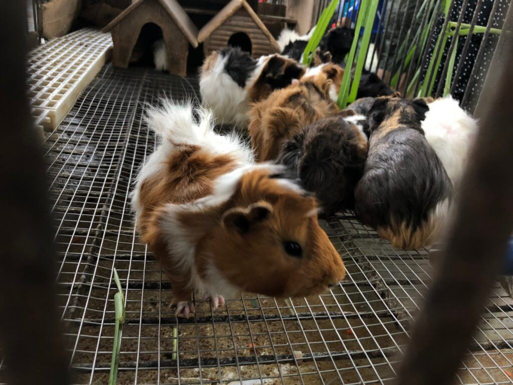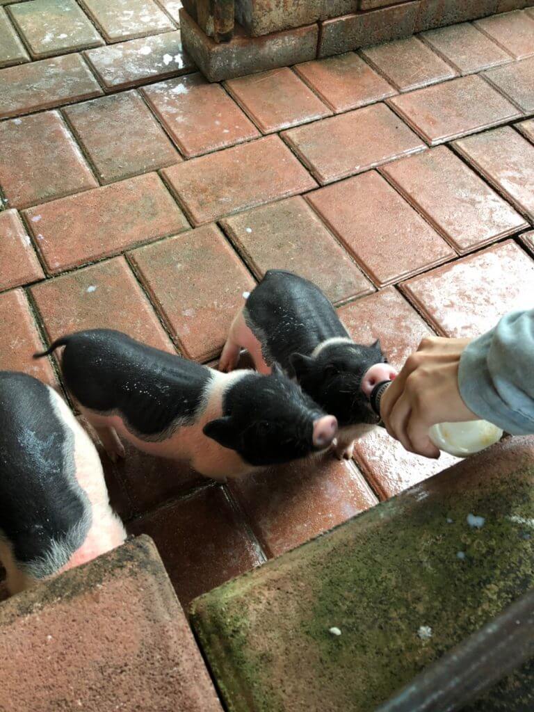 餵完小豬們牛奶後,我們往後走來到了可愛小動物區,一大群的天竺鼠窩在一起搶食,每一隻都胖嘟嘟的,而且都好貪吃看到食物全部都往同一個方向沖,看起來很像在舉行某種邪教儀式啊哈哈
