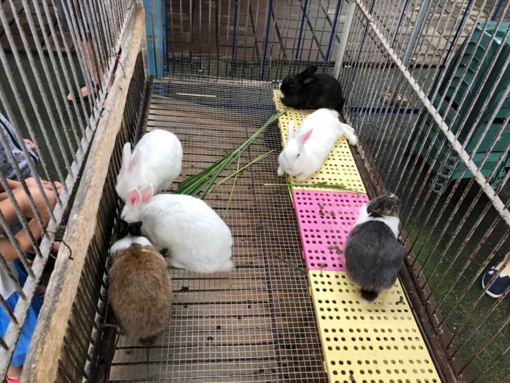 而一樣歸屬於可愛小動物的兔子,反而沒什麼人圍觀、餵食,也許是因為兔子們都懶洋洋的趴在那邊,和天竺鼠有活力的比起來,大家都跑去天竺鼠那了