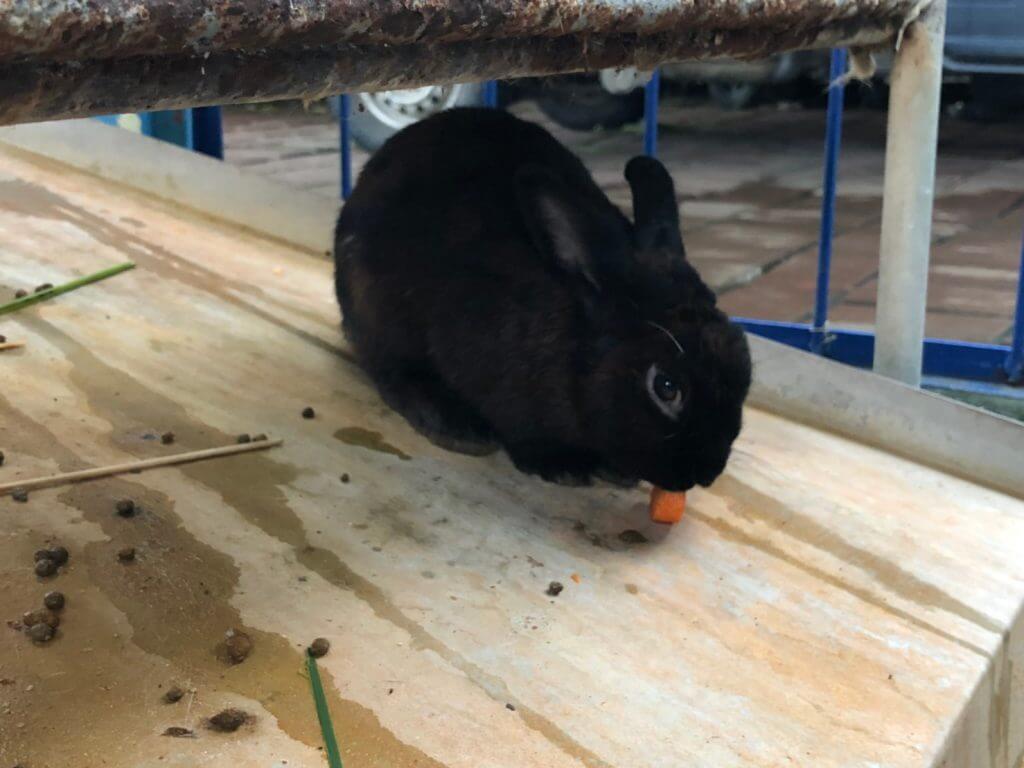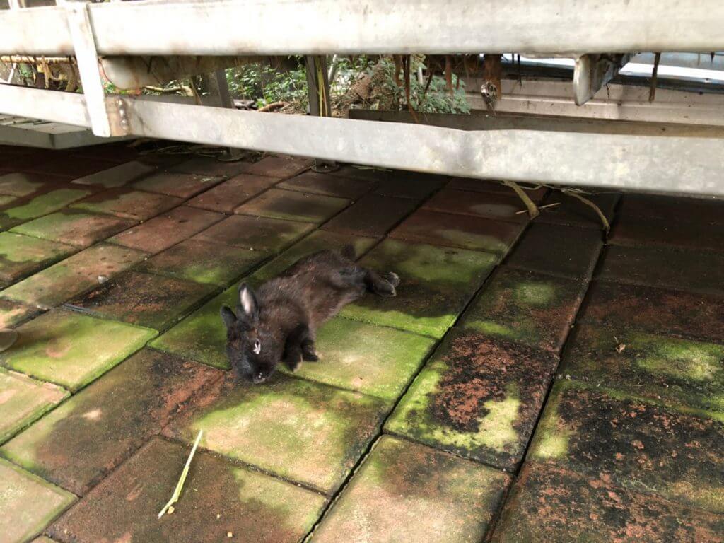 不過我本來就比較喜歡兔子,也因為大家都在天竺鼠那,我才能在兔子區待這麼久,蹲在旁邊逗兔子玩的時候,竟然發現有一隻越獄的兔子,這圍欄這麼高,牠是怎麼偷偷跑出來的