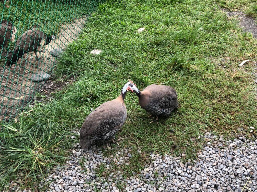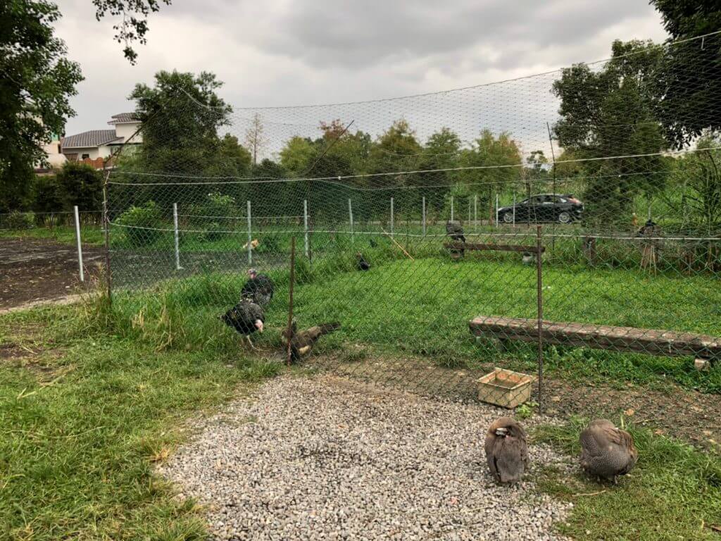 在往裡面走一點,就來到了家禽區,我發現牧場裡的家禽不外乎就是不關籠的雞,再加上圍起來的火雞、珠雞、孔雀等等,然後也是最不受歡迎的一區哈哈