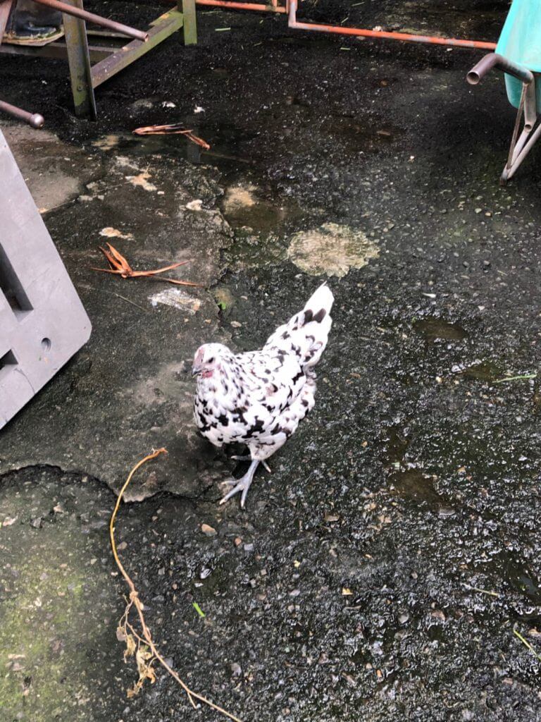 不過當天我們在這裡看到一隻超特別的雞,他的花色竟然是黑白色的,而且整身都是,這隻雞真的是走在時尚尖端啊