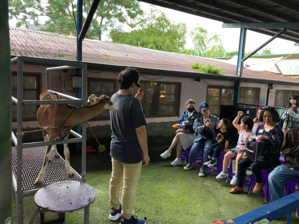 一開始工作人員會詢問一些關於羊咩咩的問題,然後在進行分組競賽,最後在將我們擠出來的羊奶加熱給我們喝,而活動結束後還可以拿著報名的貼紙到DIY教室換一罐羊乳糖,是不是很超值呢