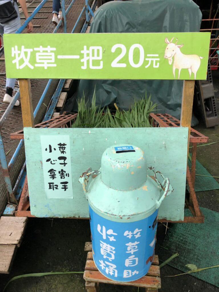 擠完羊奶後,我和小伙伴來到最後一區,羊咩咩的家,在羊咩咩的家的旁邊有設立一個牧草收費箱,也是自己投幣然後自己拿取,1把20塊,份量還挺多的