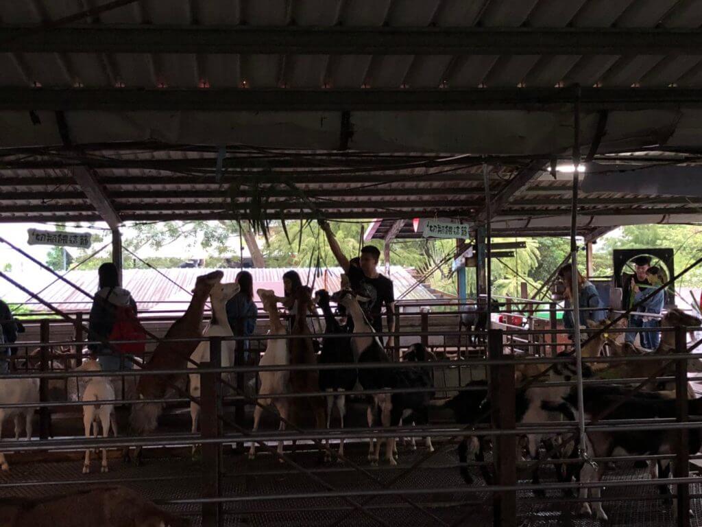 在我們還在分著飼料的時候,廣播響起來,原來是擠羊奶的活動要開始啦~~趕快把飼料倒進飼料槽裡,我們就去活動的地方報到啦~