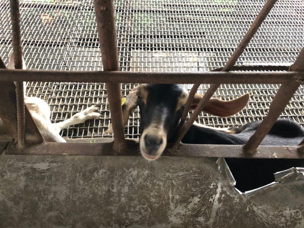在羊咩咩的家,羊咩咩依照年紀被分成一區一區的,最靠近入口的羊咩咩是還在喝牛奶的小羊們,若是可以餵牧草的羊咩咩們在天花板上都有掛一個告示牌,在餵食前,記得要看清楚哦