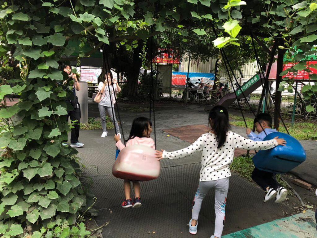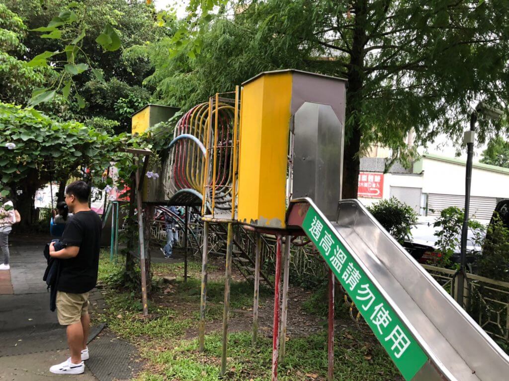 園區範圍不大,在入口處的地方有一處小孩遊戲區,設有溜滑梯盪鞦韆等設施給小朋友玩,不過要注意的是,因為溜滑梯的材質是金屬的,如果遇到天氣很好的時候,記得摸摸看溫度燙不燙才可以讓小朋友玩哦,免得小朋友受傷了