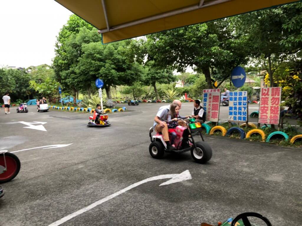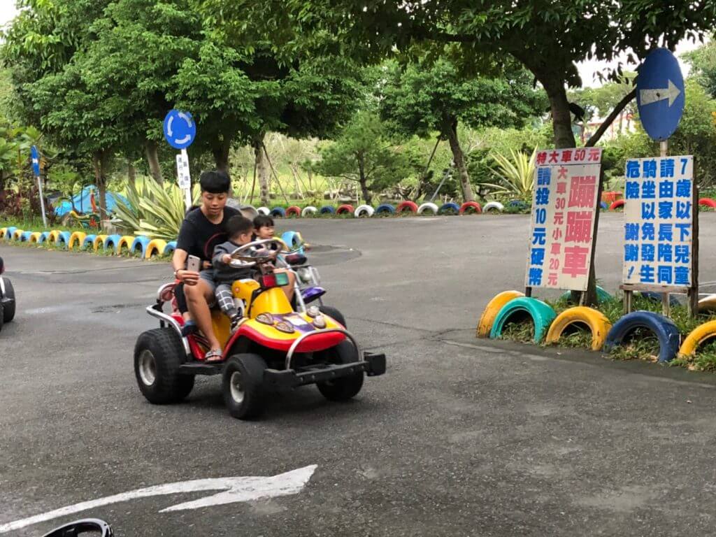 逛完整個宜農牧場後,我們來到隔壁的小型遊樂場,裡面有套圈圈、射氣球、咖啡杯還有已經很少見的蹦蹦車,看到蹦蹦車整個超懷念的,還記得在我小的時候附近公園有一塊空地是蹦蹦車的地方,那時候的我還小都還是被爸爸載著四處跑呢