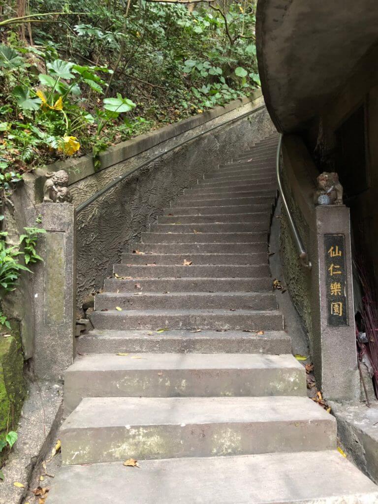 不過在此時我跟小伙伴鬧了一個烏龍,我們誤以為佛手洞的入口就在隔壁的樓梯上,我們就這樣爬上了陡峭的樓梯,好不容易來到了最上面才發現佛手洞竟然不在這裡,而在樓梯的最上面是「仙洞公園」及「聖安宮」,就讓我們也參觀看看吧