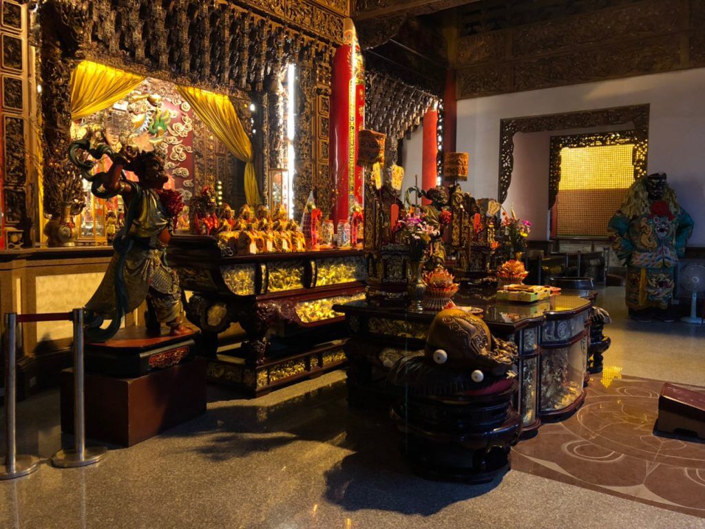 聖安宮除了外觀很壯觀外,裡面也看起來非常莊嚴,這裡有提供免費的熱茶及礦泉水,還有一些 隨緣品,而且在這裡的信徒們,各個都很熱情、熱心,我們在參觀的時候他們會過來問我們需不需要幫忙,而且大家都還會帶著一些水果、零食在這裡和大家邊分享邊聊天,這感覺真的很棒呢