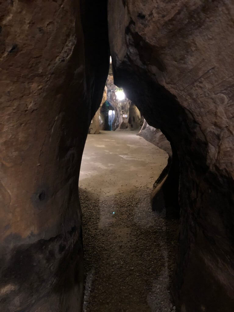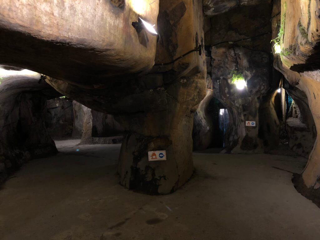 一進去佛手洞,裡面的路彎彎曲曲又分為好多條路,就像是一個天然的迷宮一樣,好險在石壁上都還有指示牌,和同樣是海蝕洞的仙洞巖比起來,佛手洞的地面是小石子相對比較難走